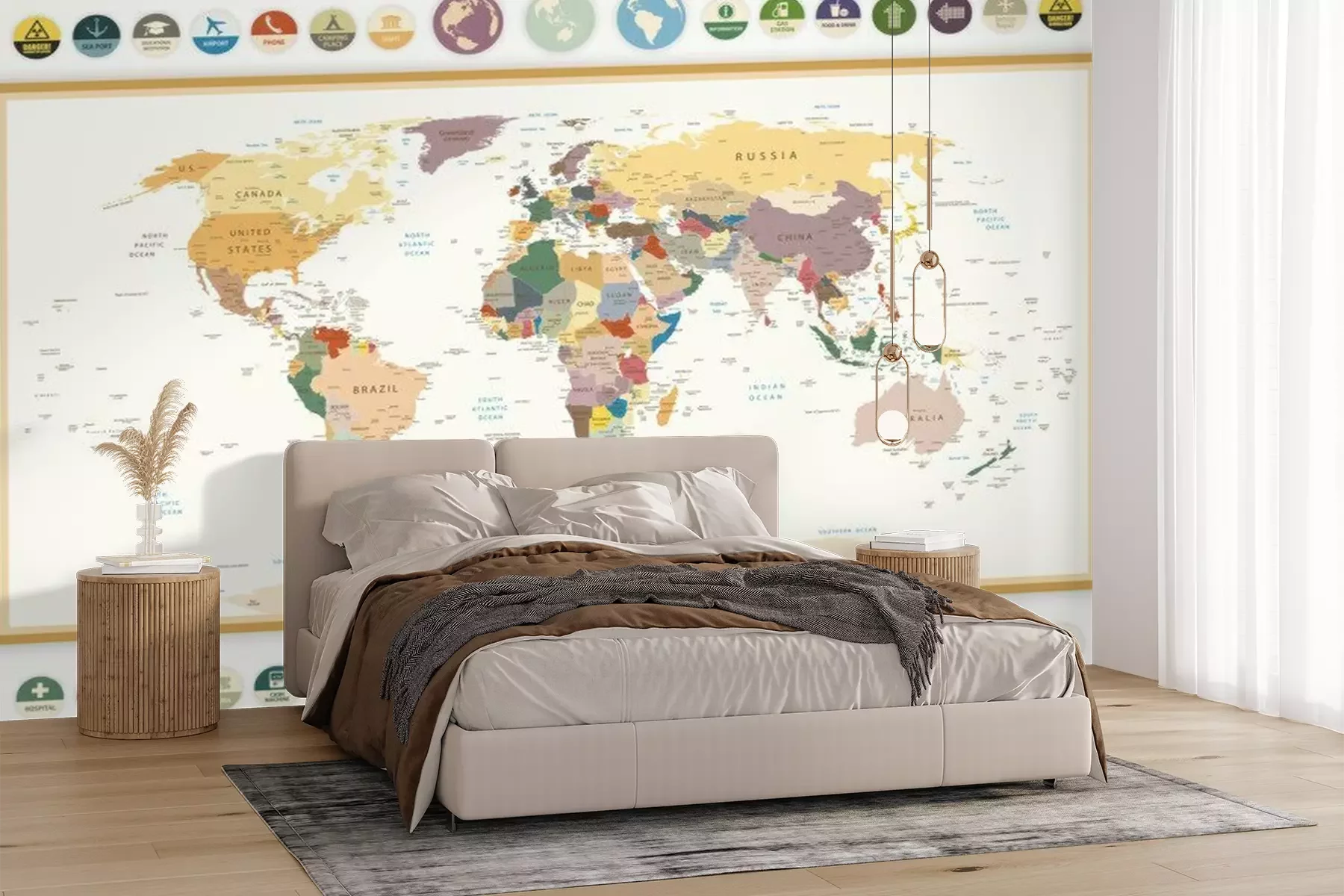 Wereldkaart met symbolenFotobehang