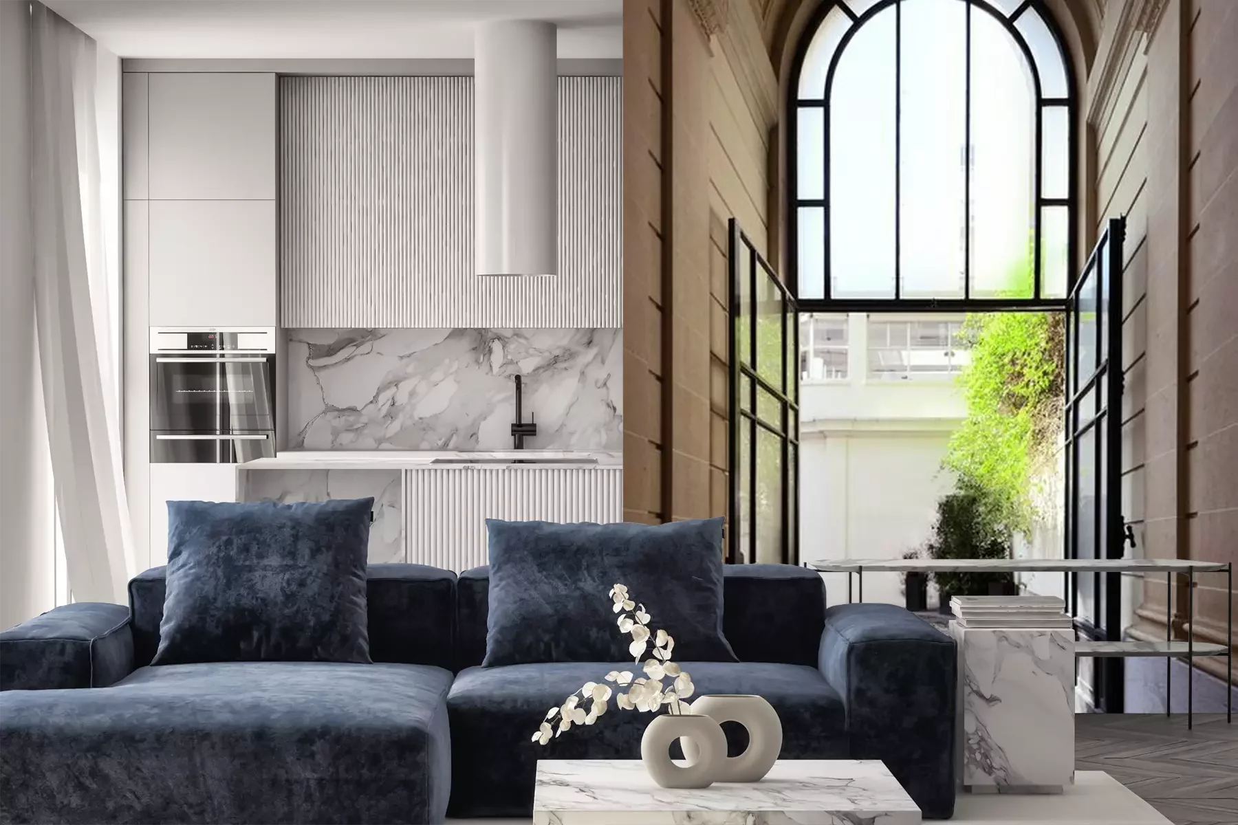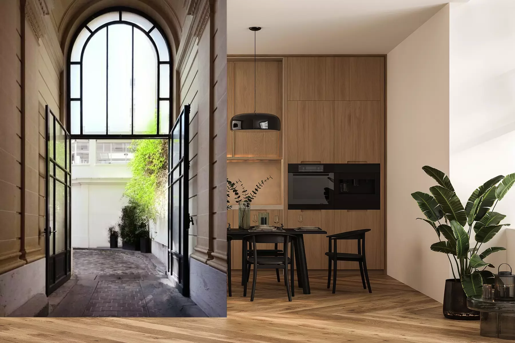 Fotobehang Porte d'atelier en verre et Ferronnerie