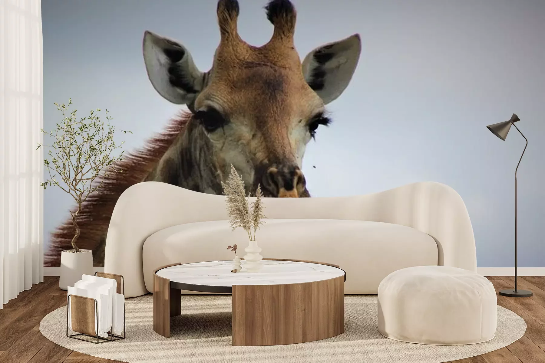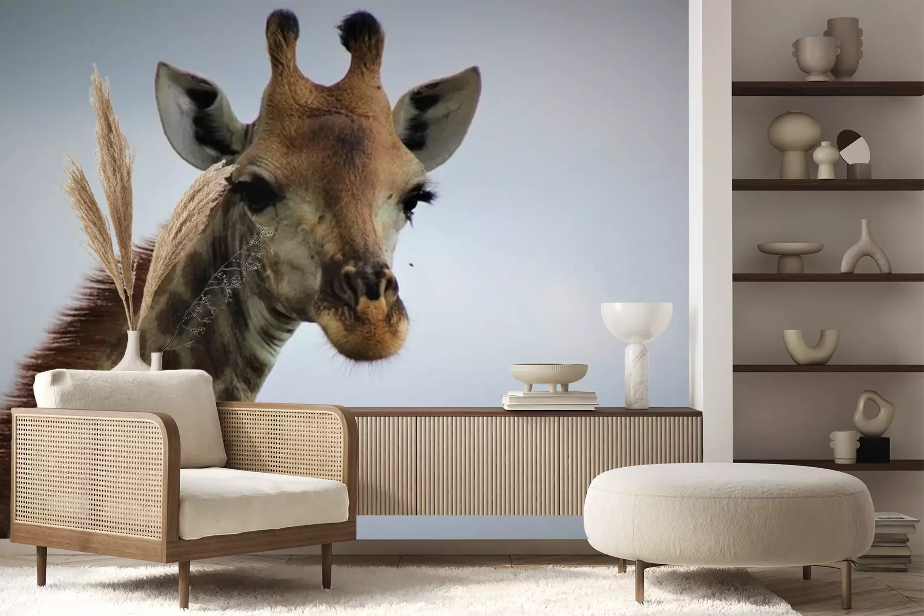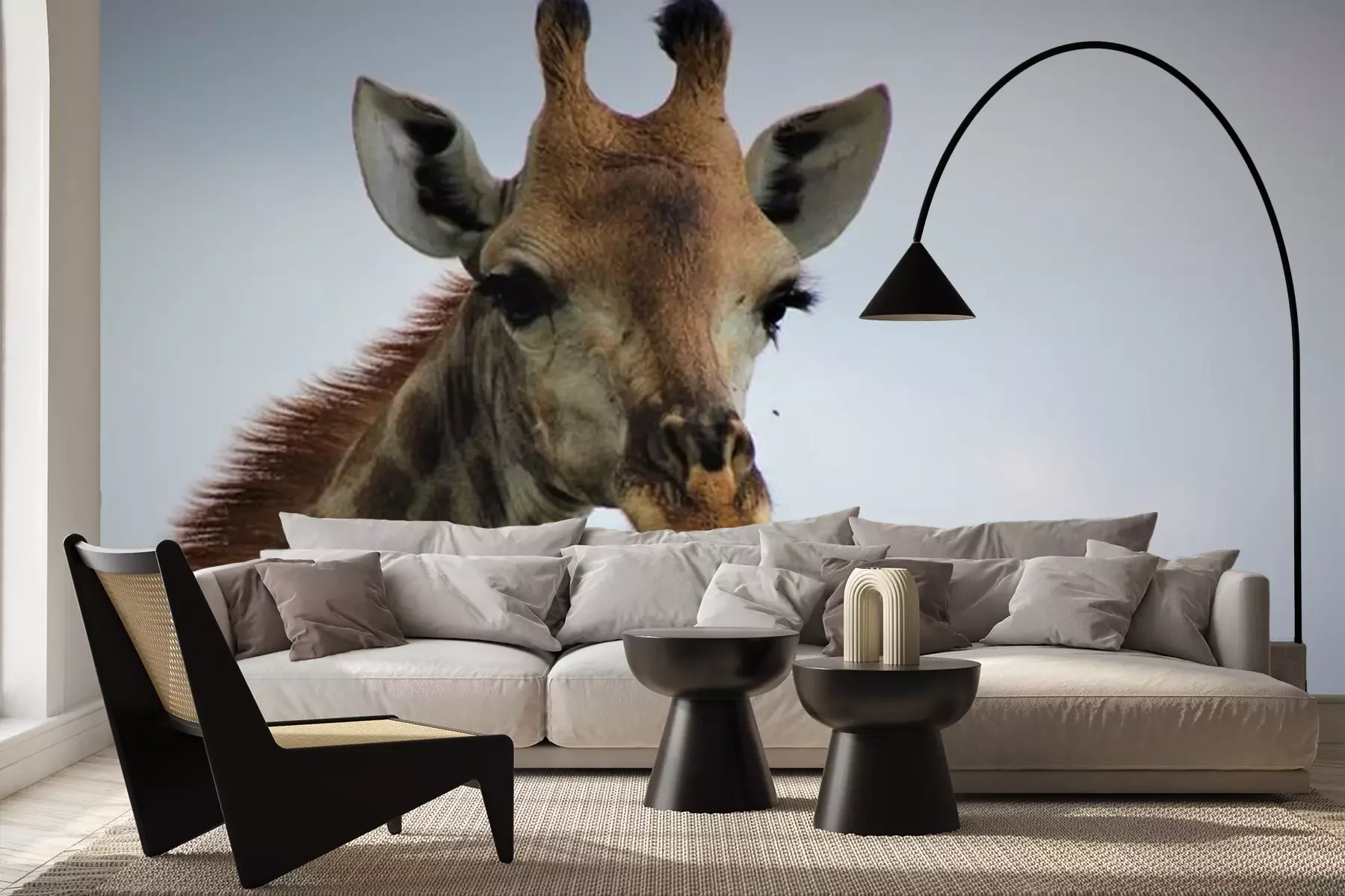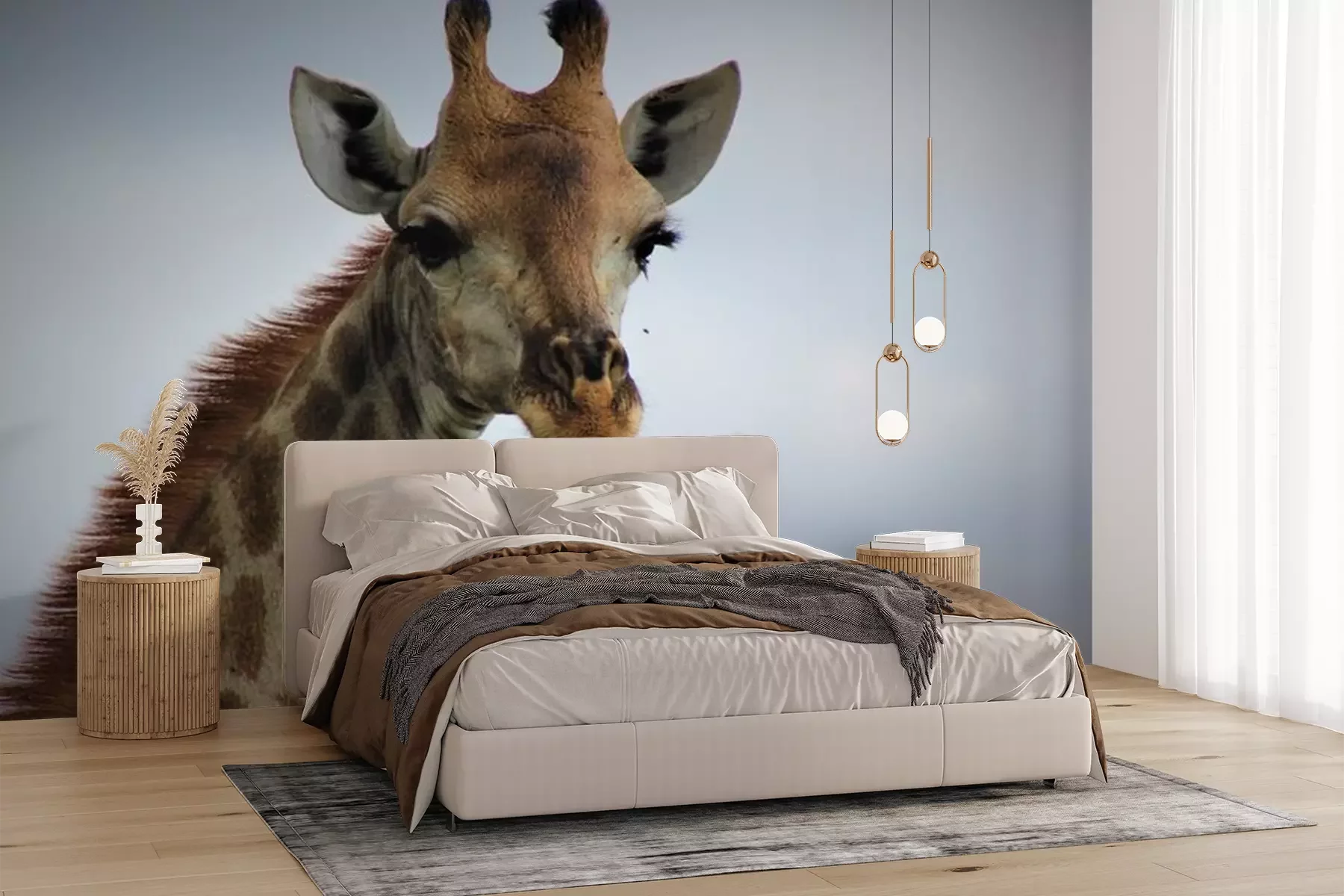 Fotobehang Portret van de giraf op de achtergrond van wolken