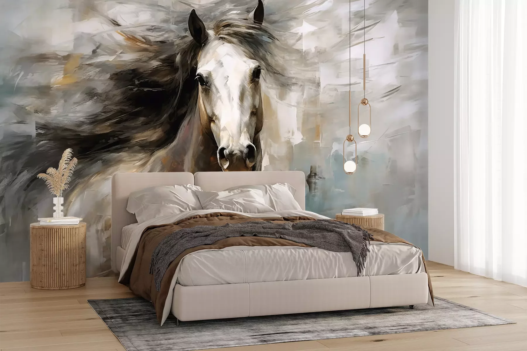 Het materiaal Premium+ is een gestructureerd vinyl op vlies met een gewicht van 255 g/m², dat kleine oneffenheden in de muur effectief camoufleert. De subtiele structuur van fijn zand geeft het oppervlak een exclusieve uitstraling, terwijl de halfmatte afwerking de diepte van de kleuren benadrukt. Het materiaal is dampdoorlatend, waardoor het ook in de keuken en badkamer kan worden gebruikt. De maximale breedte van één baan bedraagt 100 cm – bij grotere afmetingen wordt het fotobehang in meerdere gelijke banen verdeeld. De lijm wordt direct op de muur aangebracht en het behang wordt rand-aan-rand geplakt, wat zorgt voor een esthetisch resultaat zonder zichtbare naden. Het oppervlak kan gemakkelijk worden schoongemaakt door het voorzichtig af te nemen met een vochtige doek.