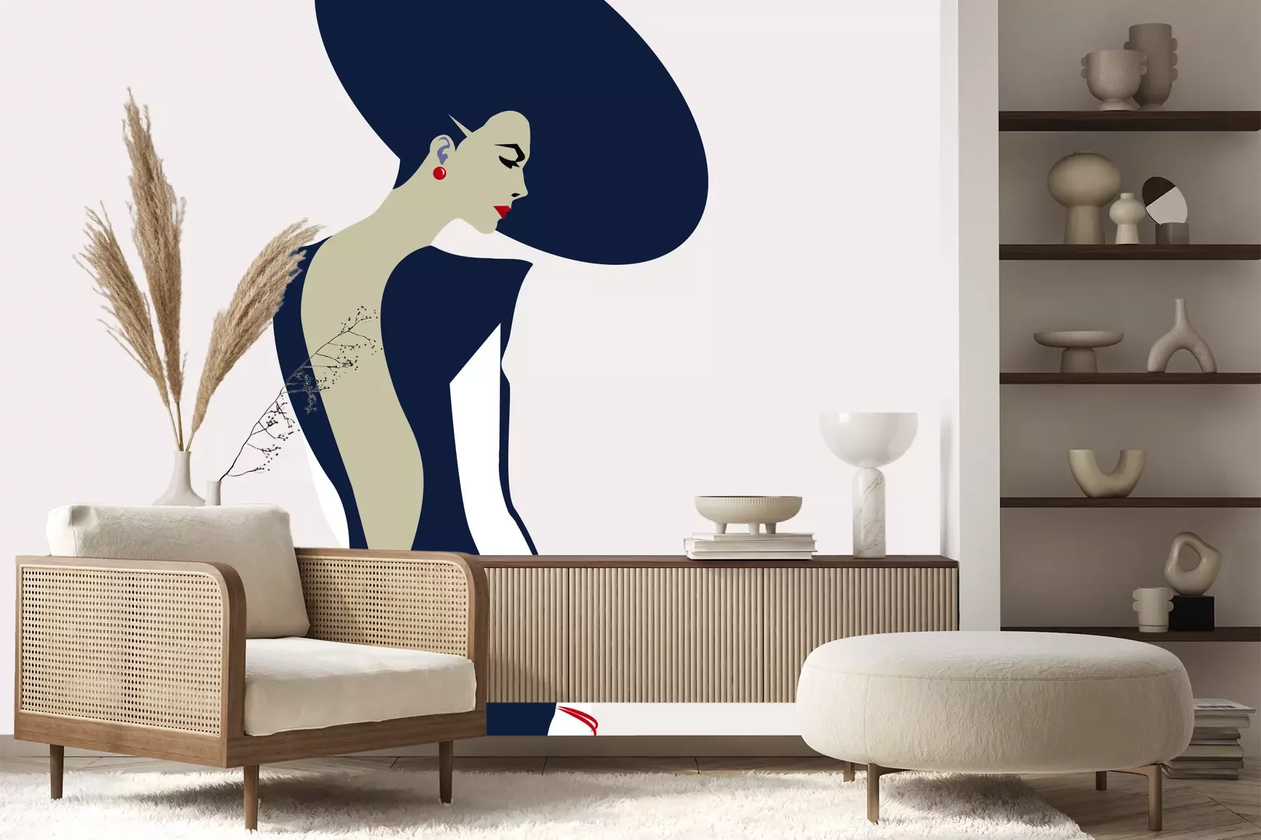 Het materiaal Premium+ is een gestructureerd vinyl op vlies met een gewicht van 255 g/m², dat kleine oneffenheden in de muur effectief camoufleert. De subtiele structuur van fijn zand geeft het oppervlak een exclusieve uitstraling, terwijl de halfmatte afwerking de diepte van de kleuren benadrukt. Het materiaal is dampdoorlatend, waardoor het ook in de keuken en badkamer kan worden gebruikt. De maximale breedte van één baan bedraagt 100 cm – bij grotere afmetingen wordt het fotobehang in meerdere gelijke banen verdeeld. De lijm wordt direct op de muur aangebracht en het behang wordt rand-aan-rand geplakt, wat zorgt voor een esthetisch resultaat zonder zichtbare naden. Het oppervlak kan gemakkelijk worden schoongemaakt door het voorzichtig af te nemen met een vochtige doek.