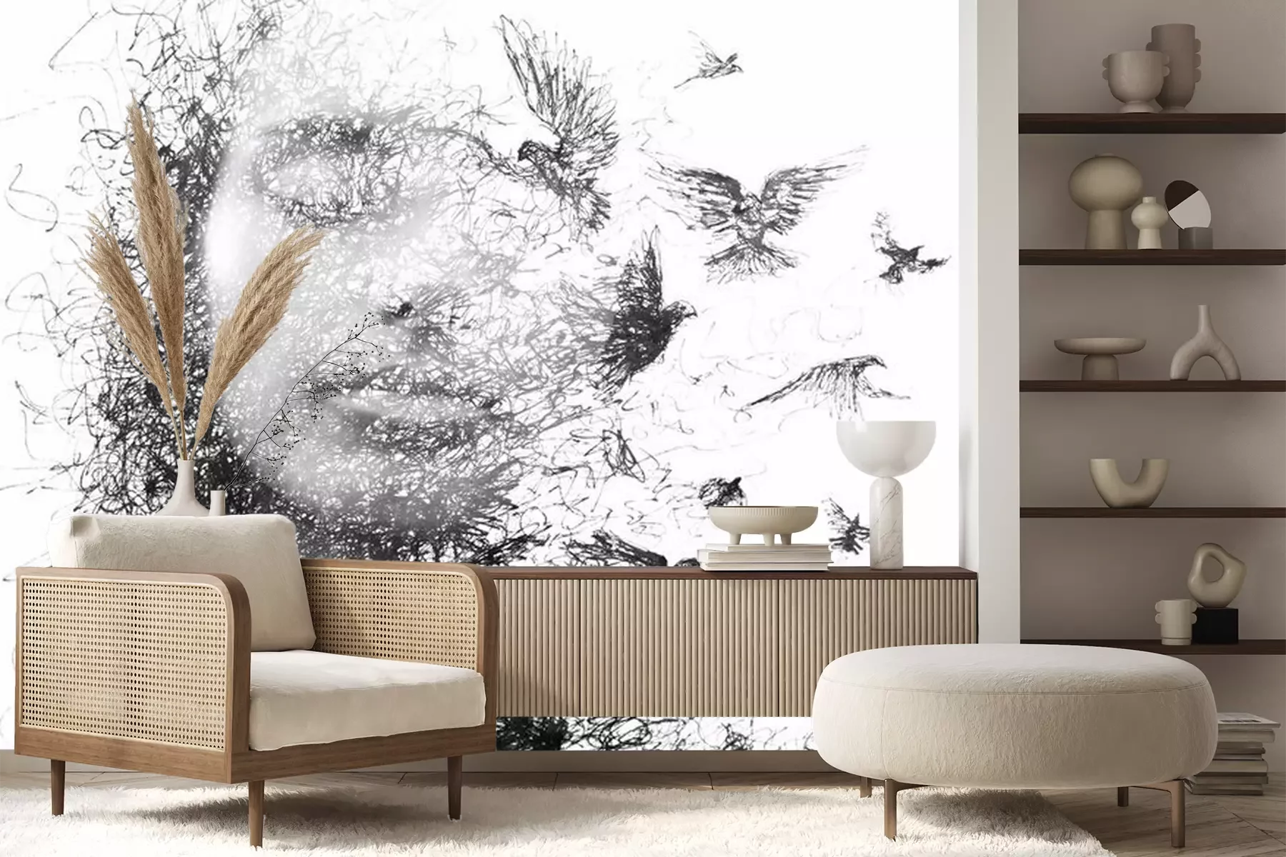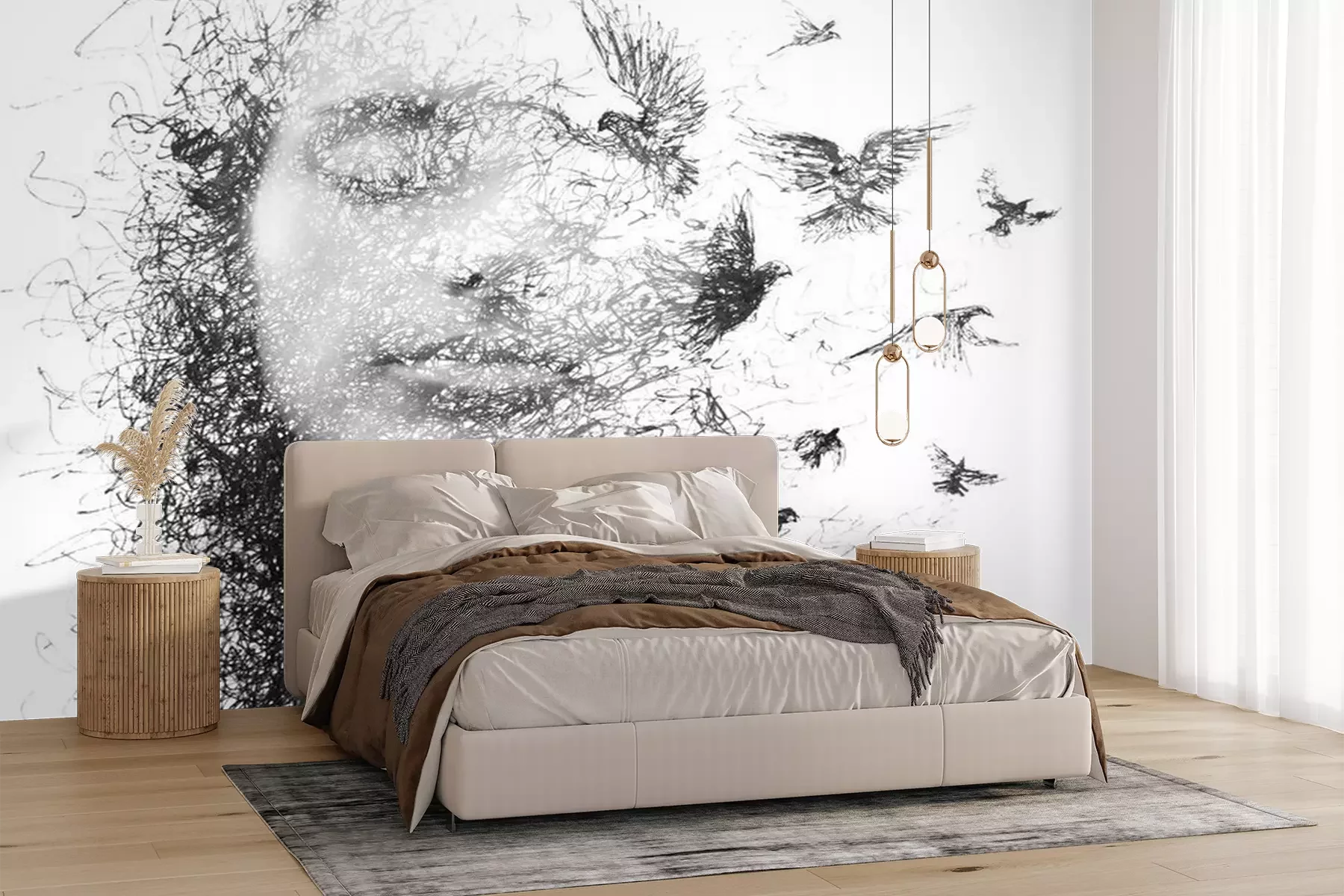 Het materiaal Premium+ is een gestructureerd vinyl op vlies met een gewicht van 255 g/m², dat kleine oneffenheden in de muur effectief camoufleert. De subtiele structuur van fijn zand geeft het oppervlak een exclusieve uitstraling, terwijl de halfmatte afwerking de diepte van de kleuren benadrukt. Het materiaal is dampdoorlatend, waardoor het ook in de keuken en badkamer kan worden gebruikt. De maximale breedte van één baan bedraagt 100 cm – bij grotere afmetingen wordt het fotobehang in meerdere gelijke banen verdeeld. De lijm wordt direct op de muur aangebracht en het behang wordt rand-aan-rand geplakt, wat zorgt voor een esthetisch resultaat zonder zichtbare naden. Het oppervlak kan gemakkelijk worden schoongemaakt door het voorzichtig af te nemen met een vochtige doek.