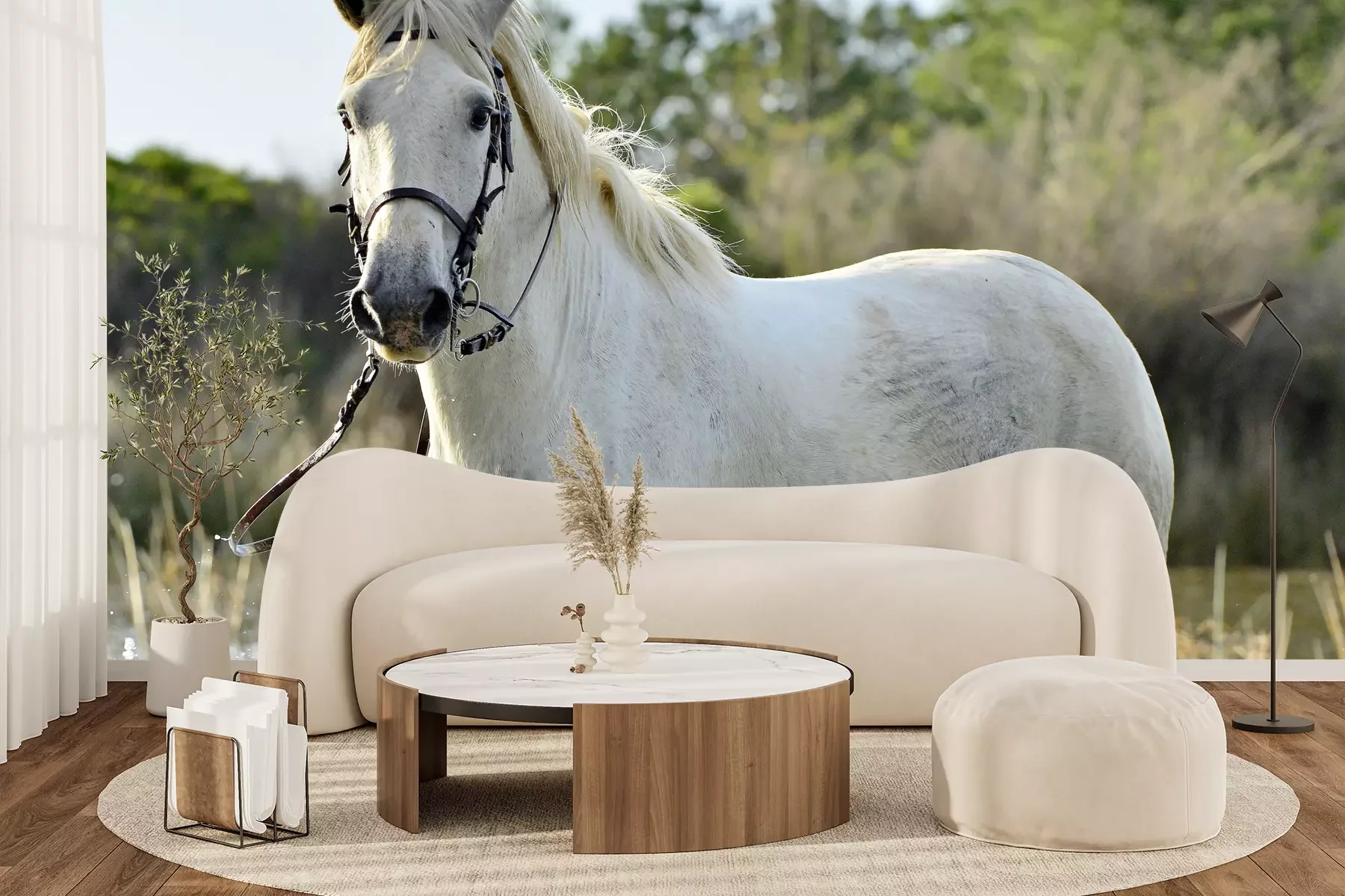 Het materiaal Standard is een hoogwaardig latexmateriaal met een glad, mat oppervlak. Dankzij de HP Latex-printtechnologie zijn de kleuren intens, duurzaam en UV-bestendig, waardoor het patroon jarenlang een onberispelijke uitstraling behoudt. Vervuilde oppervlakken kunnen voorzichtig worden afgeveegd met een droge doek. De maximale breedte van één baan bedraagt 95 cm of 105 cm – afhankelijk van de bestelde fotobehangbreedte. Bij grotere afmetingen wordt het patroon verdeeld over meerdere gelijkmatige banen. Het fotobehang wordt rand-aan-randaangebracht, wat vrijwel onzichtbare naden mogelijk maakt.