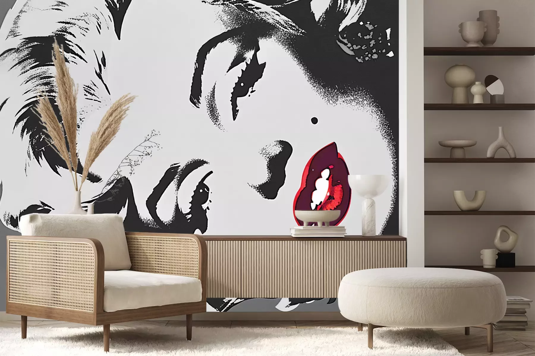 Het materiaal Standard is een hoogwaardig latexmateriaal met een glad, mat oppervlak. Dankzij de HP Latex-printtechnologie zijn de kleuren intens, duurzaam en UV-bestendig, waardoor het patroon jarenlang een onberispelijke uitstraling behoudt. Vervuilde oppervlakken kunnen voorzichtig worden afgeveegd met een droge doek. De maximale breedte van één baan bedraagt 95 cm of 105 cm – afhankelijk van de bestelde fotobehangbreedte. Bij grotere afmetingen wordt het patroon verdeeld over meerdere gelijkmatige banen. Het fotobehang wordt rand-aan-randaangebracht, wat vrijwel onzichtbare naden mogelijk maakt.