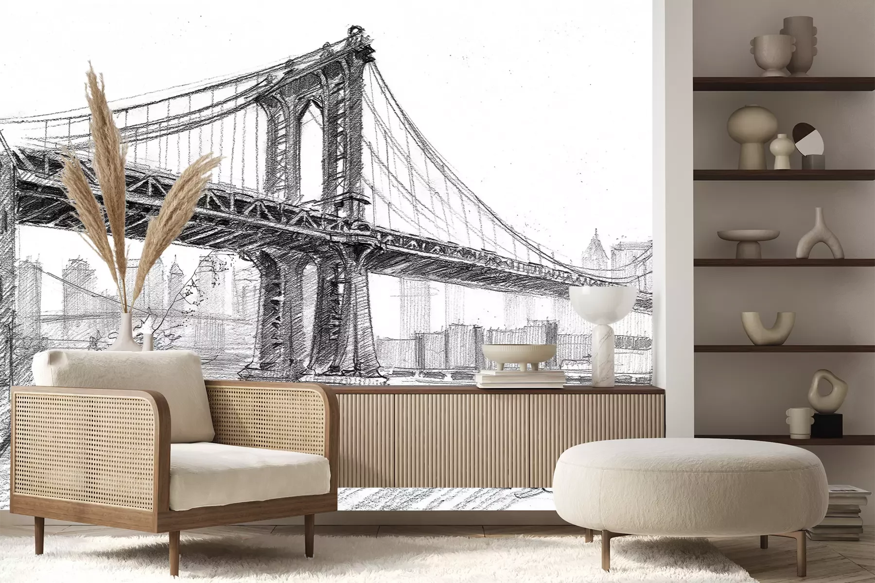 Het materiaal Premium+ is een gestructureerd vinyl op vlies met een gewicht van 255 g/m², dat kleine oneffenheden in de muur effectief camoufleert. De subtiele structuur van fijn zand geeft het oppervlak een exclusieve uitstraling, terwijl de halfmatte afwerking de diepte van de kleuren benadrukt. Het materiaal is dampdoorlatend, waardoor het ook in de keuken en badkamer kan worden gebruikt. De maximale breedte van één baan bedraagt 100 cm – bij grotere afmetingen wordt het fotobehang in meerdere gelijke banen verdeeld. De lijm wordt direct op de muur aangebracht en het behang wordt rand-aan-rand geplakt, wat zorgt voor een esthetisch resultaat zonder zichtbare naden. Het oppervlak kan gemakkelijk worden schoongemaakt door het voorzichtig af te nemen met een vochtige doek.