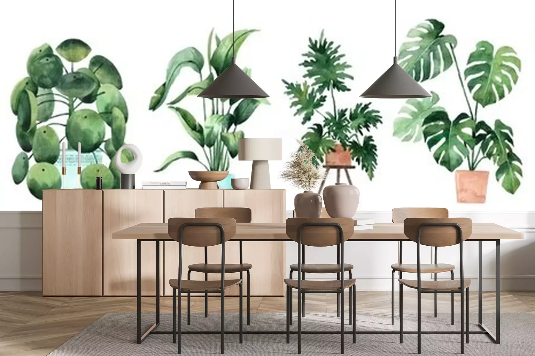 Fotobehang Potplanten in aquarel