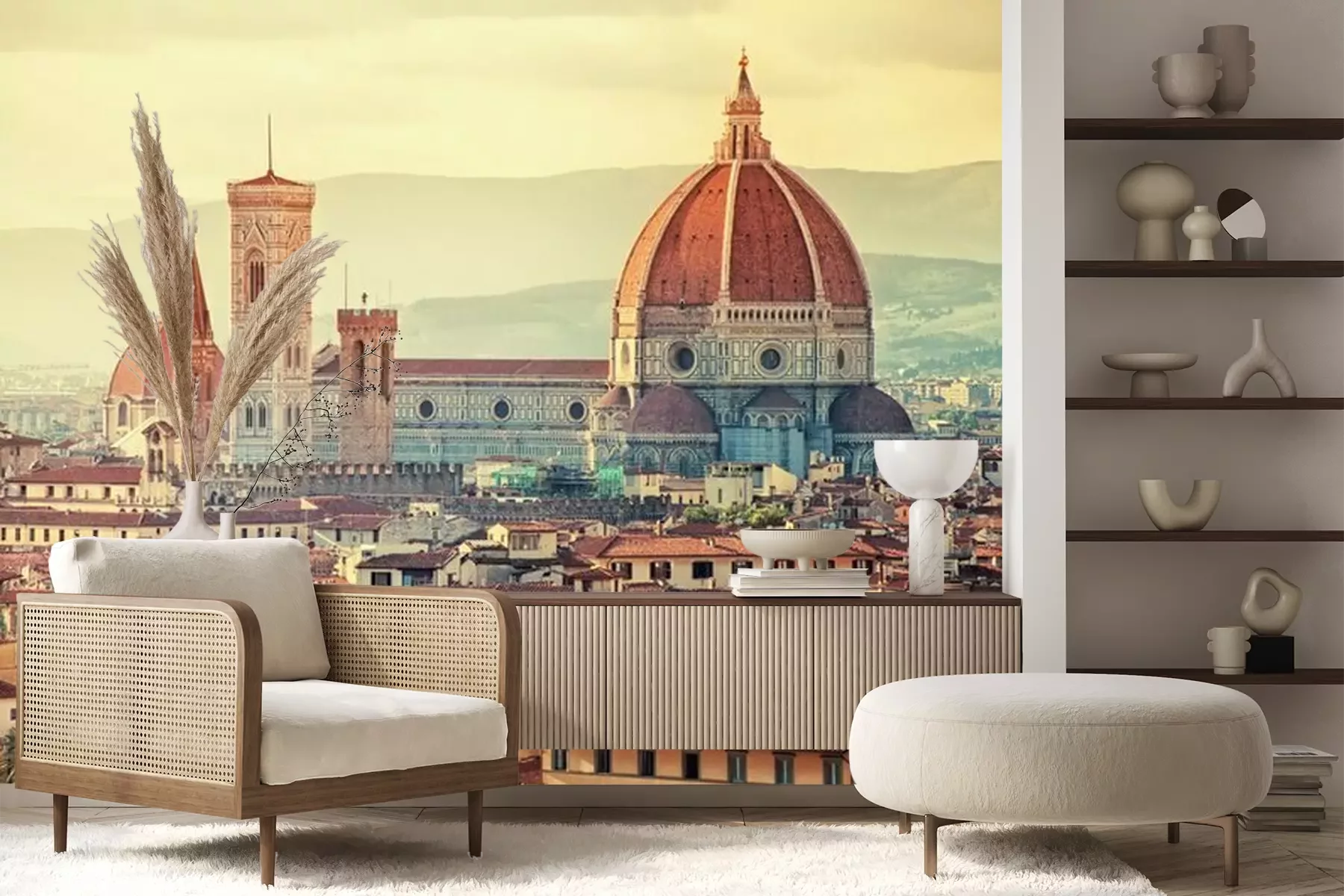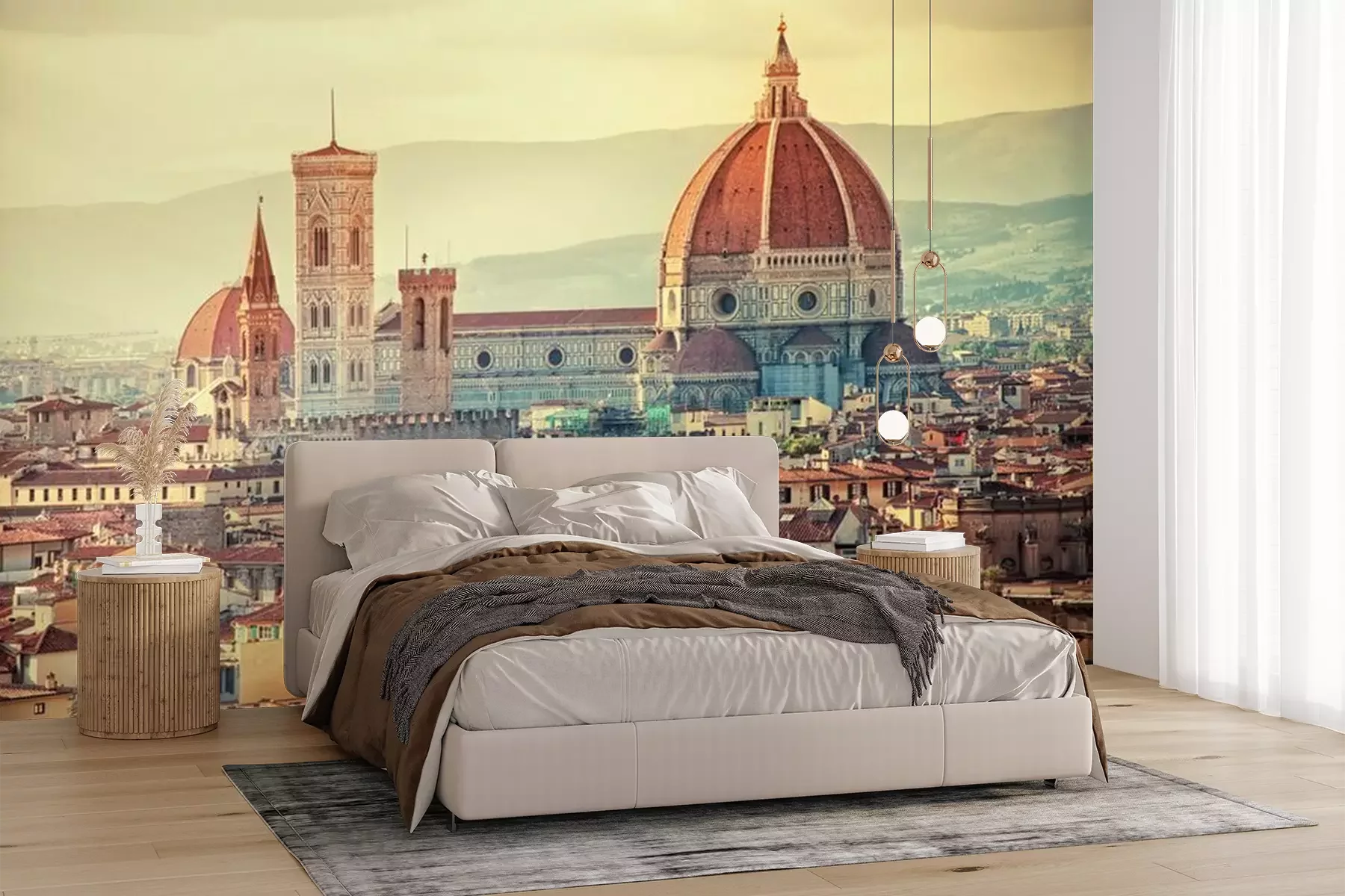 Het materiaal Premium+ is een gestructureerd vinyl op vlies met een gewicht van 255 g/m², dat kleine oneffenheden in de muur effectief camoufleert. De subtiele structuur van fijn zand geeft het oppervlak een exclusieve uitstraling, terwijl de halfmatte afwerking de diepte van de kleuren benadrukt. Het materiaal is dampdoorlatend, waardoor het ook in de keuken en badkamer kan worden gebruikt. De maximale breedte van één baan bedraagt 100 cm – bij grotere afmetingen wordt het fotobehang in meerdere gelijke banen verdeeld. De lijm wordt direct op de muur aangebracht en het behang wordt rand-aan-rand geplakt, wat zorgt voor een esthetisch resultaat zonder zichtbare naden. Het oppervlak kan gemakkelijk worden schoongemaakt door het voorzichtig af te nemen met een vochtige doek.