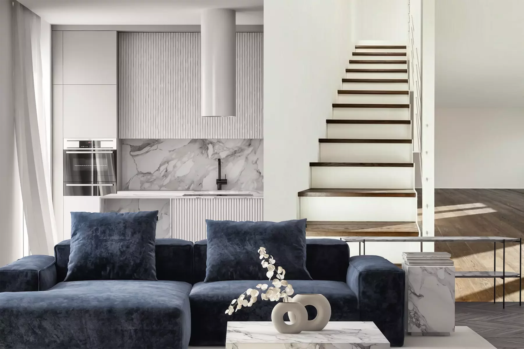Het materiaal Premium is een glad vinyl op vlies, dat bestand is tegen uitrekken en vervorming. Het is dampdoorlatend – de muren kunnen vrij ademen – waardoor het geschikt is voor gebruik in de keuken en badkamer. Bij vervuiling kan het materiaal worden afgenomen met een vochtige doek. De maximale breedte van één baan bedraagt 95 of 105 cm, afhankelijk van de beschikbaarheid. Montage vindt plaats met de rand-aan-rand methode, wat een esthetisch resultaat zonder zichtbare naden oplevert. Omdat de lijm rechtstreeks op de muur wordt aangebracht, verloopt de installatie van het fotobehang snel en eenvoudig.