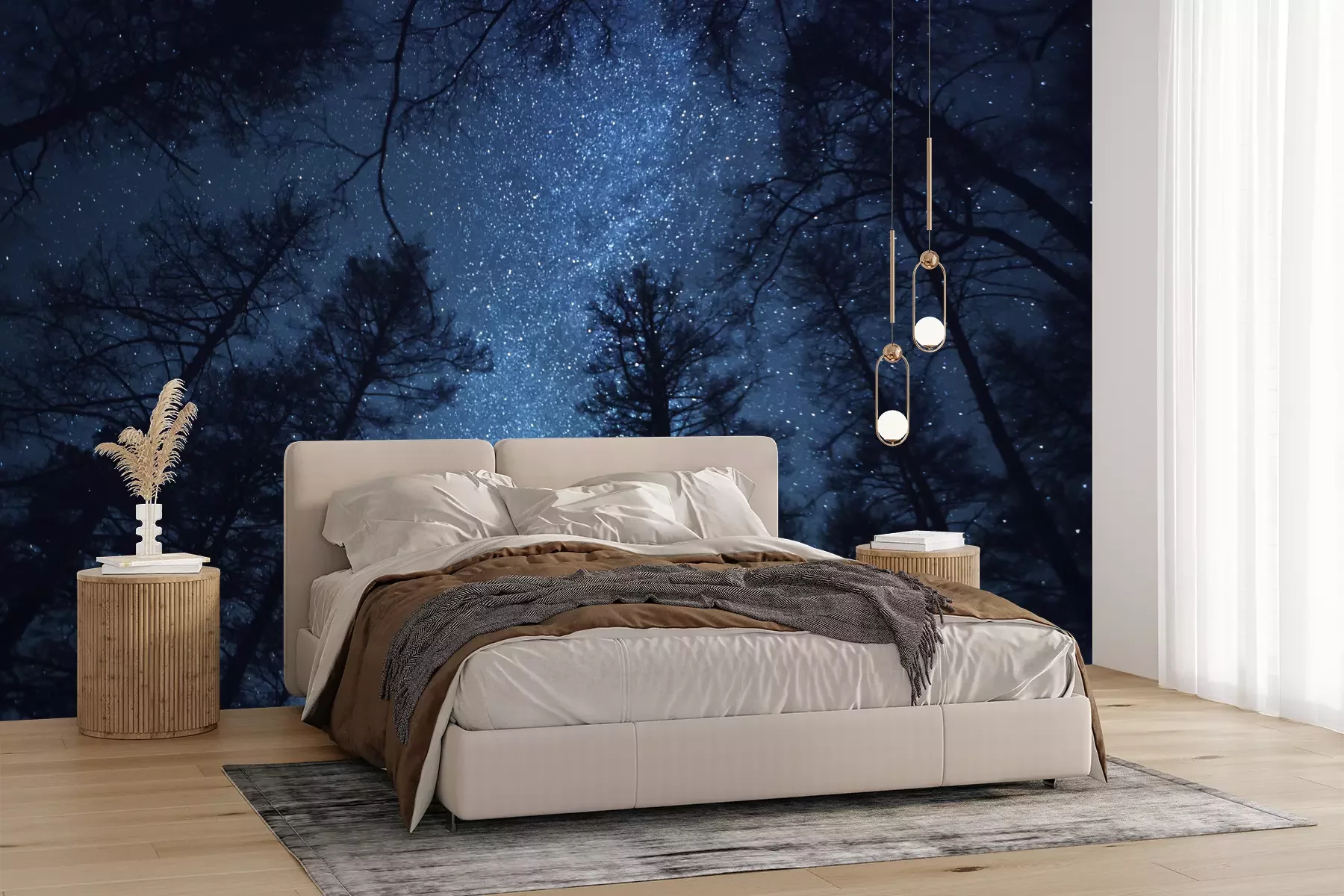 Het materiaal Premium+ is een gestructureerd vinyl op vlies met een gewicht van 255 g/m², dat kleine oneffenheden in de muur effectief camoufleert. De subtiele structuur van fijn zand geeft het oppervlak een exclusieve uitstraling, terwijl de halfmatte afwerking de diepte van de kleuren benadrukt. Het materiaal is dampdoorlatend, waardoor het ook in de keuken en badkamer kan worden gebruikt. De maximale breedte van één baan bedraagt 100 cm – bij grotere afmetingen wordt het fotobehang in meerdere gelijke banen verdeeld. De lijm wordt direct op de muur aangebracht en het behang wordt rand-aan-rand geplakt, wat zorgt voor een esthetisch resultaat zonder zichtbare naden. Het oppervlak kan gemakkelijk worden schoongemaakt door het voorzichtig af te nemen met een vochtige doek.