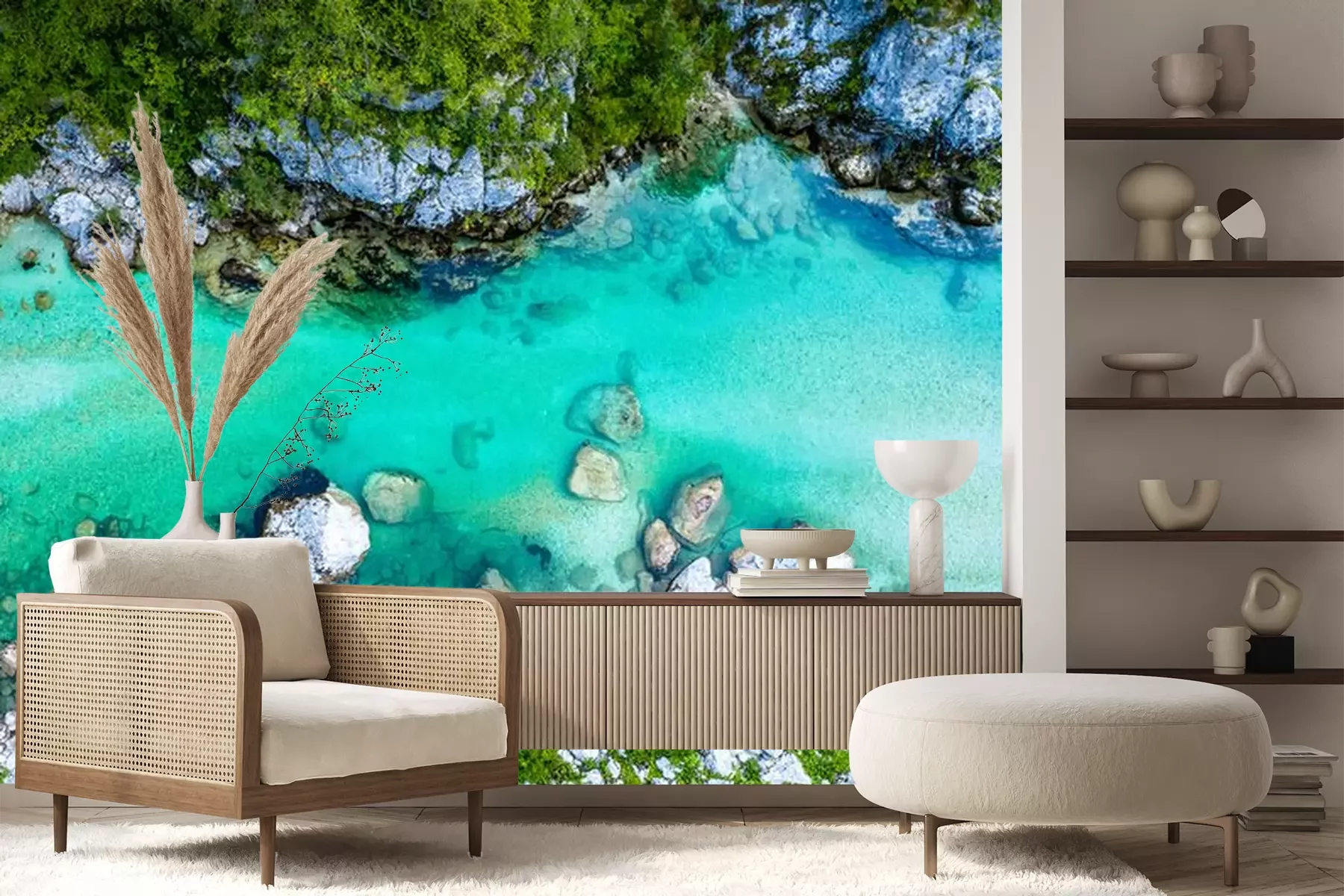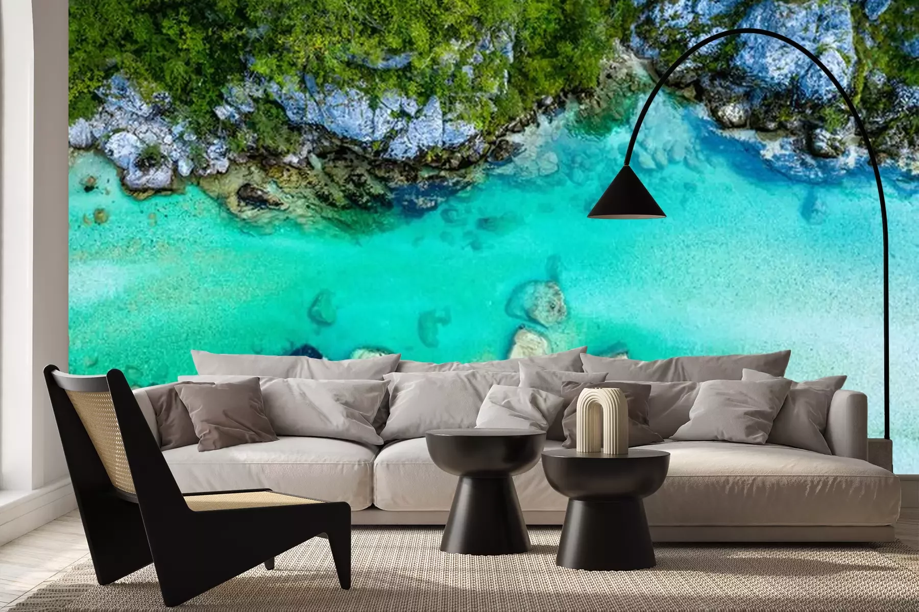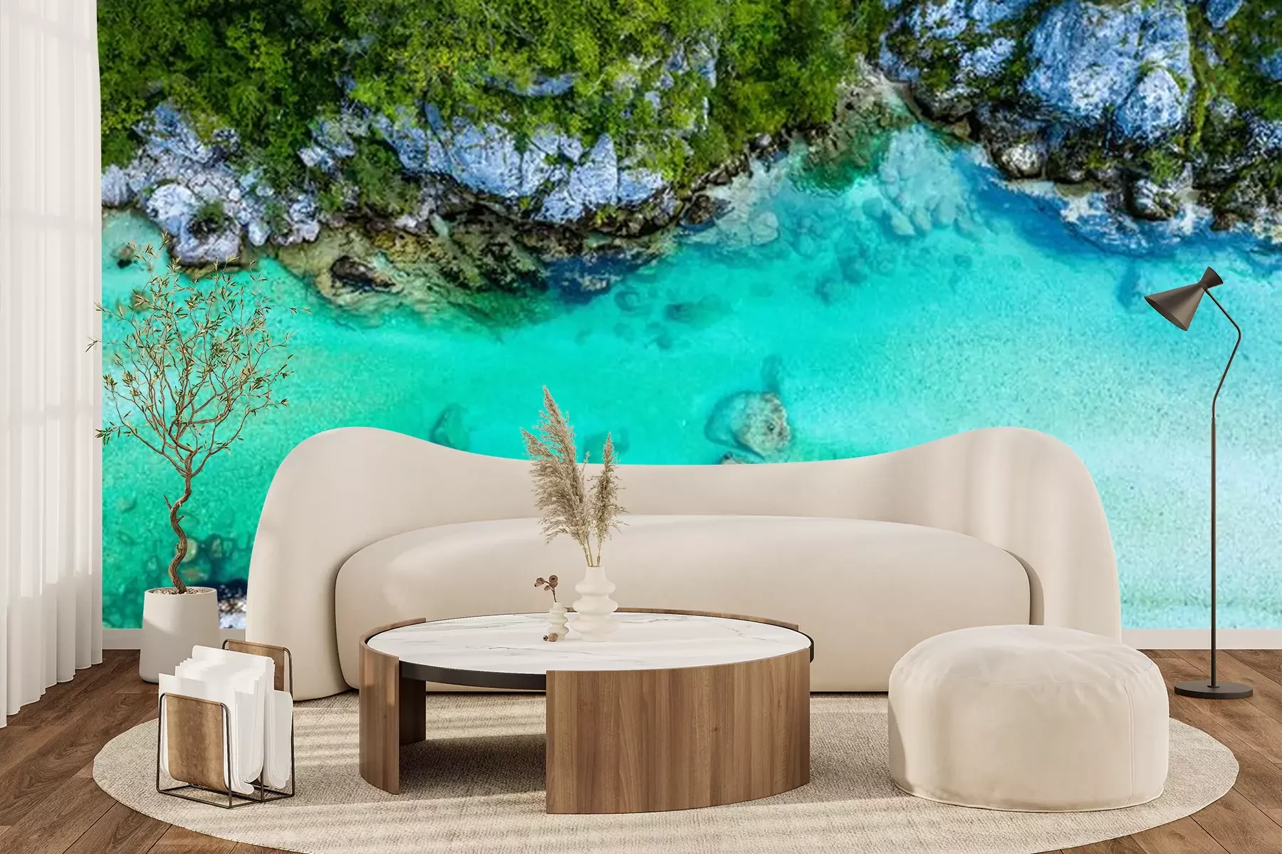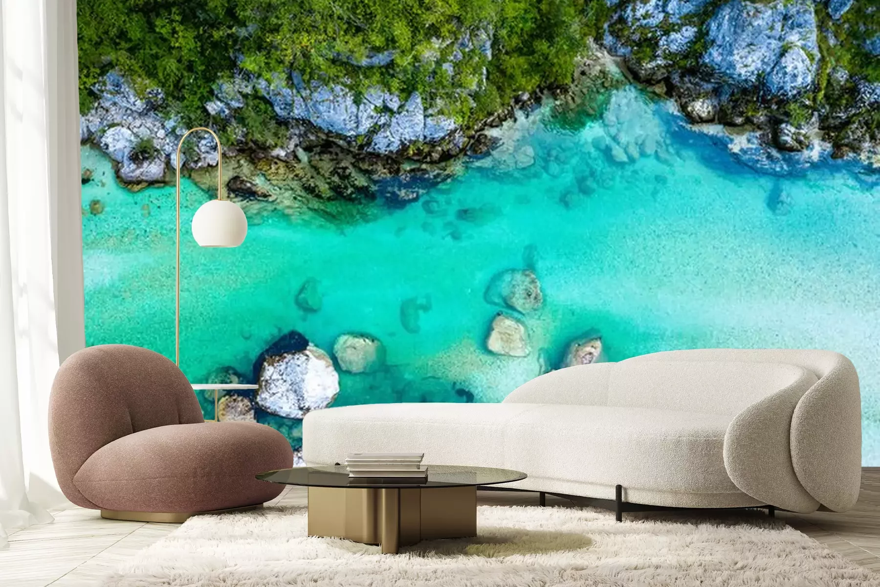 Fotobehang Prachtige Soča rivier in Slovenië vanuit vogelperspectief