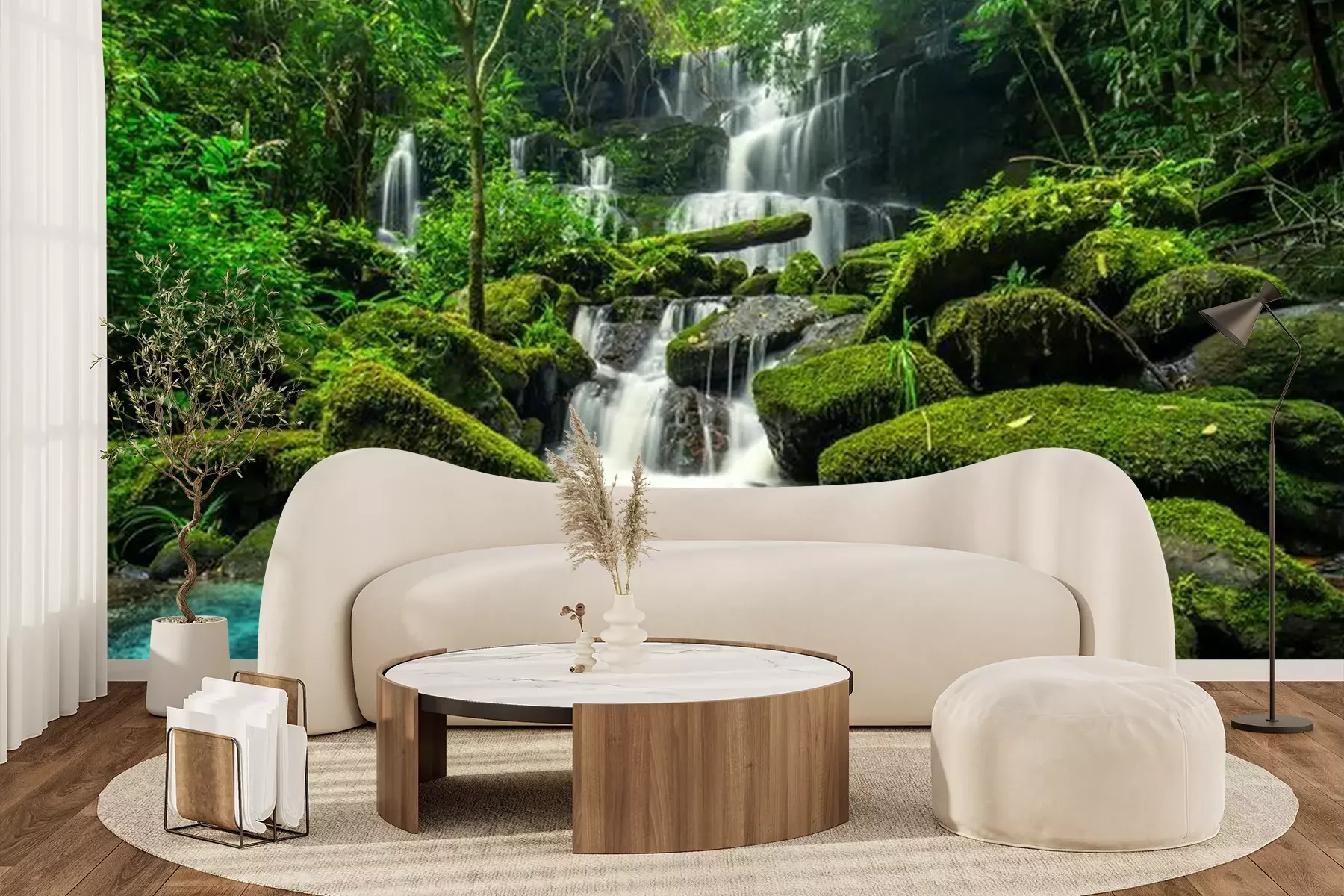 Het materiaal Premium+ is een gestructureerd vinyl op vlies met een gewicht van 255 g/m², dat kleine oneffenheden in de muur effectief camoufleert. De subtiele structuur van fijn zand geeft het oppervlak een exclusieve uitstraling, terwijl de halfmatte afwerking de diepte van de kleuren benadrukt. Het materiaal is dampdoorlatend, waardoor het ook in de keuken en badkamer kan worden gebruikt. De maximale breedte van één baan bedraagt 100 cm – bij grotere afmetingen wordt het fotobehang in meerdere gelijke banen verdeeld. De lijm wordt direct op de muur aangebracht en het behang wordt rand-aan-rand geplakt, wat zorgt voor een esthetisch resultaat zonder zichtbare naden. Het oppervlak kan gemakkelijk worden schoongemaakt door het voorzichtig af te nemen met een vochtige doek.