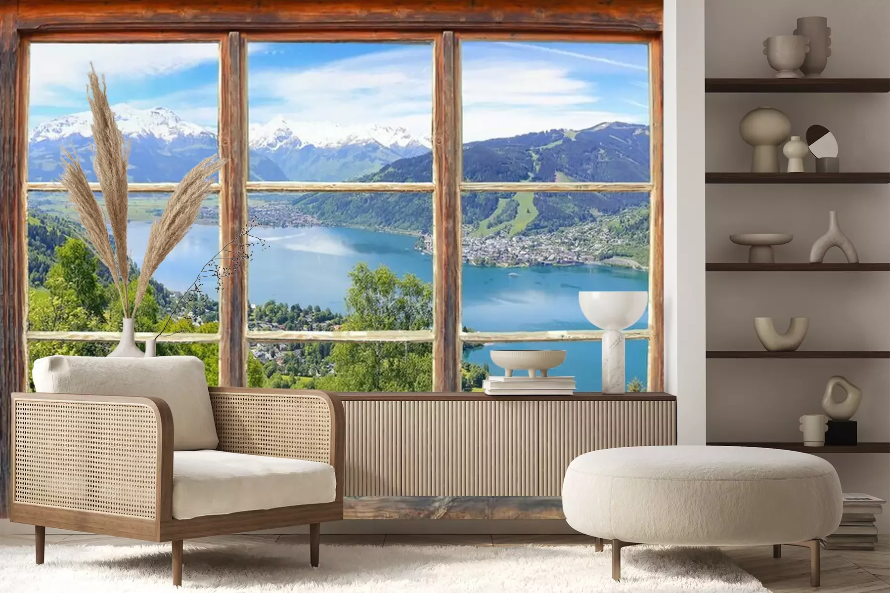 Raam met uitzicht op de TappenkarseeFotobehang