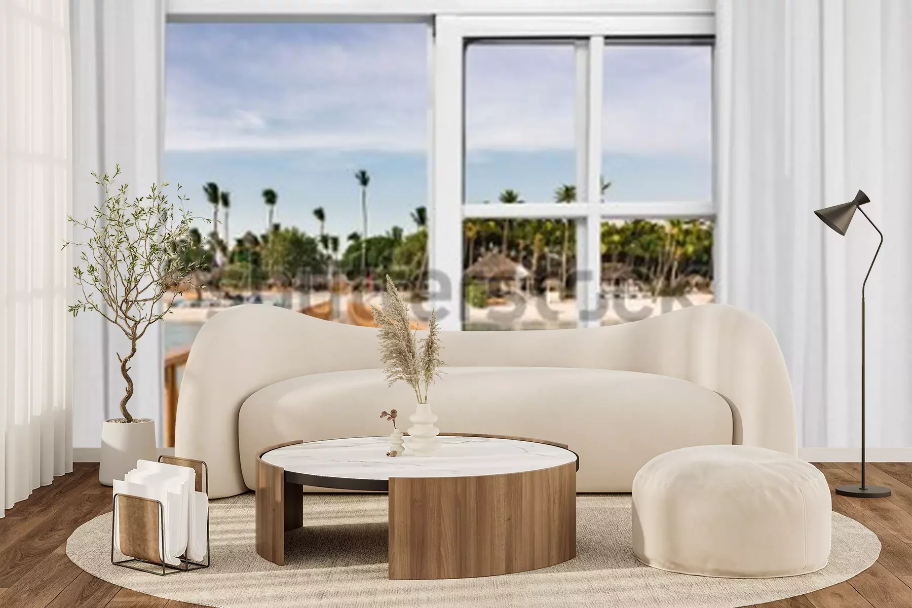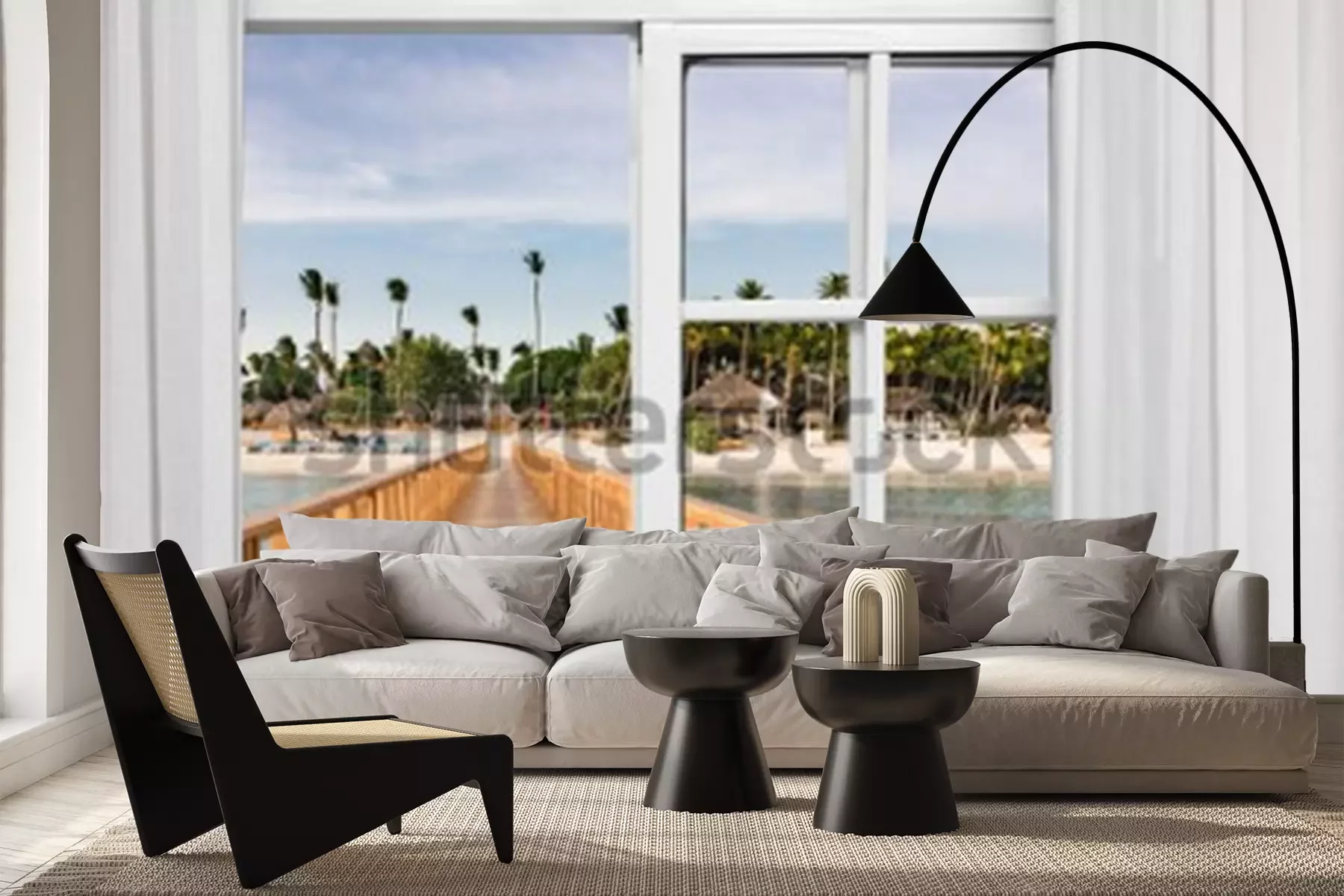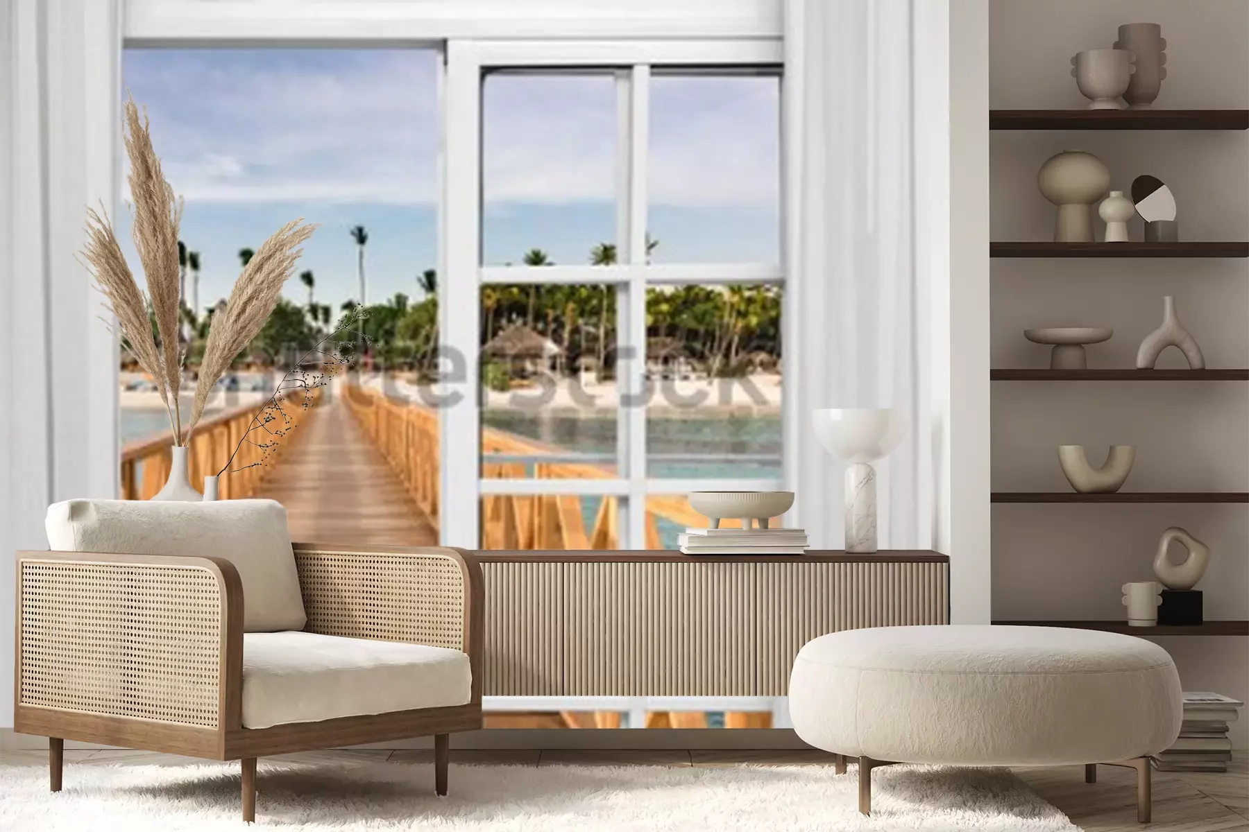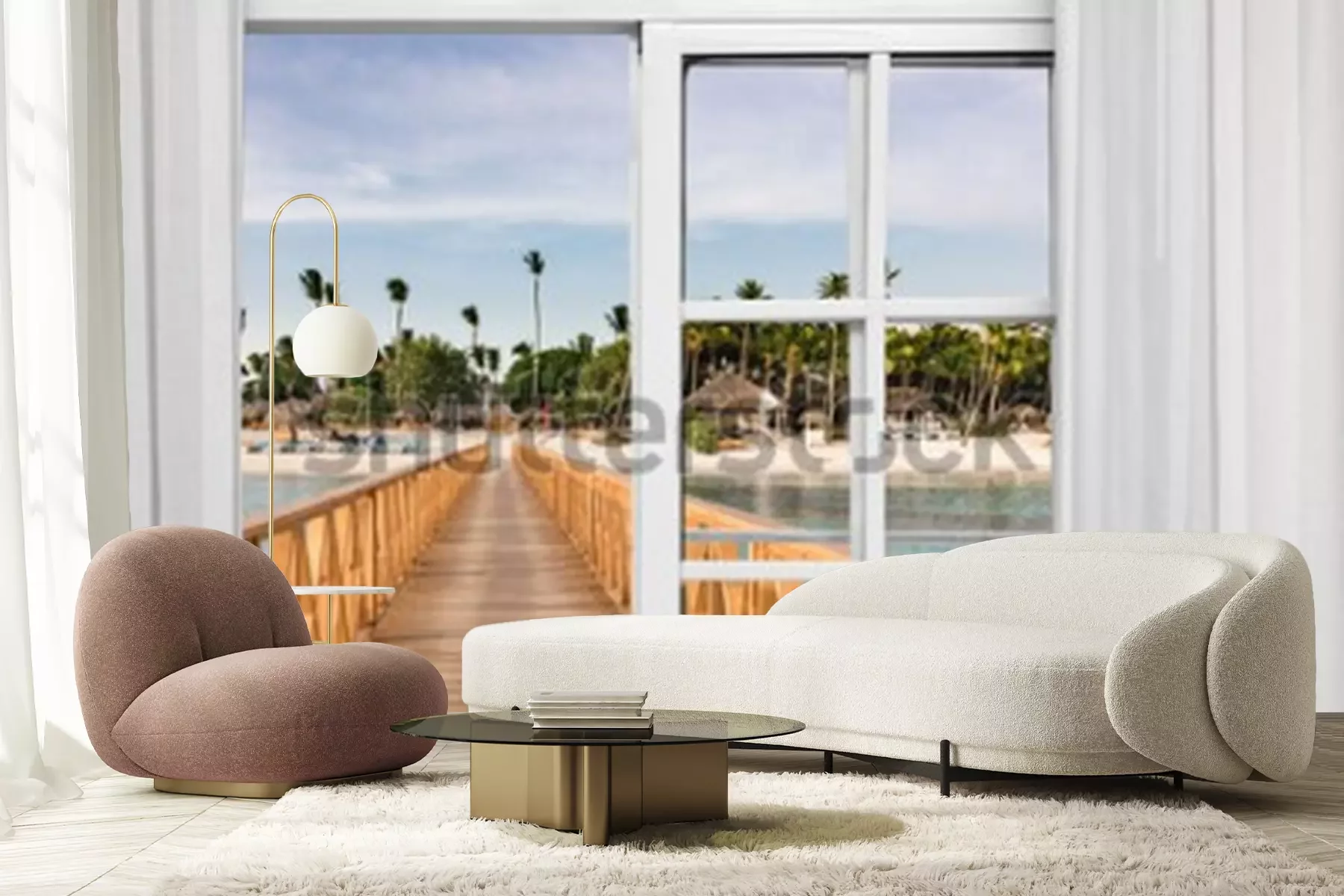 Fotobehang Raam open uitzicht op het prieel in de zee