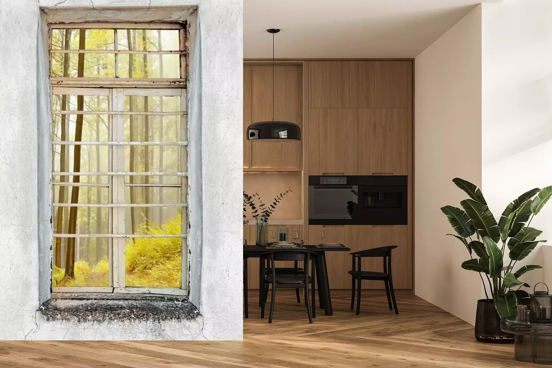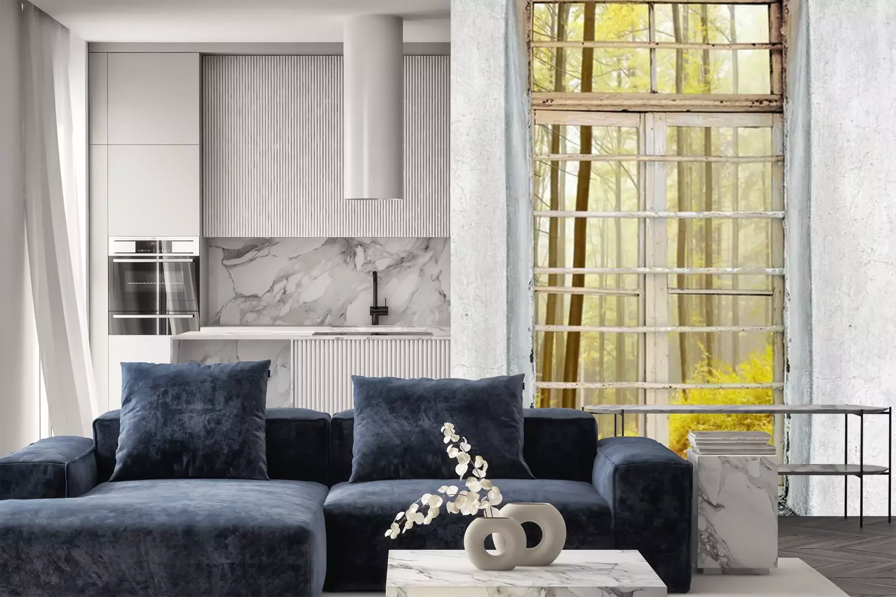 Het materiaal Premium+ is een gestructureerd vinyl op vlies met een gewicht van 255 g/m², dat kleine oneffenheden in de muur effectief camoufleert. De subtiele structuur van fijn zand geeft het oppervlak een exclusieve uitstraling, terwijl de halfmatte afwerking de diepte van de kleuren benadrukt. Het materiaal is dampdoorlatend, waardoor het ook in de keuken en badkamer kan worden gebruikt. De maximale breedte van één baan bedraagt 100 cm – bij grotere afmetingen wordt het fotobehang in meerdere gelijke banen verdeeld. De lijm wordt direct op de muur aangebracht en het behang wordt rand-aan-rand geplakt, wat zorgt voor een esthetisch resultaat zonder zichtbare naden. Het oppervlak kan gemakkelijk worden schoongemaakt door het voorzichtig af te nemen met een vochtige doek.