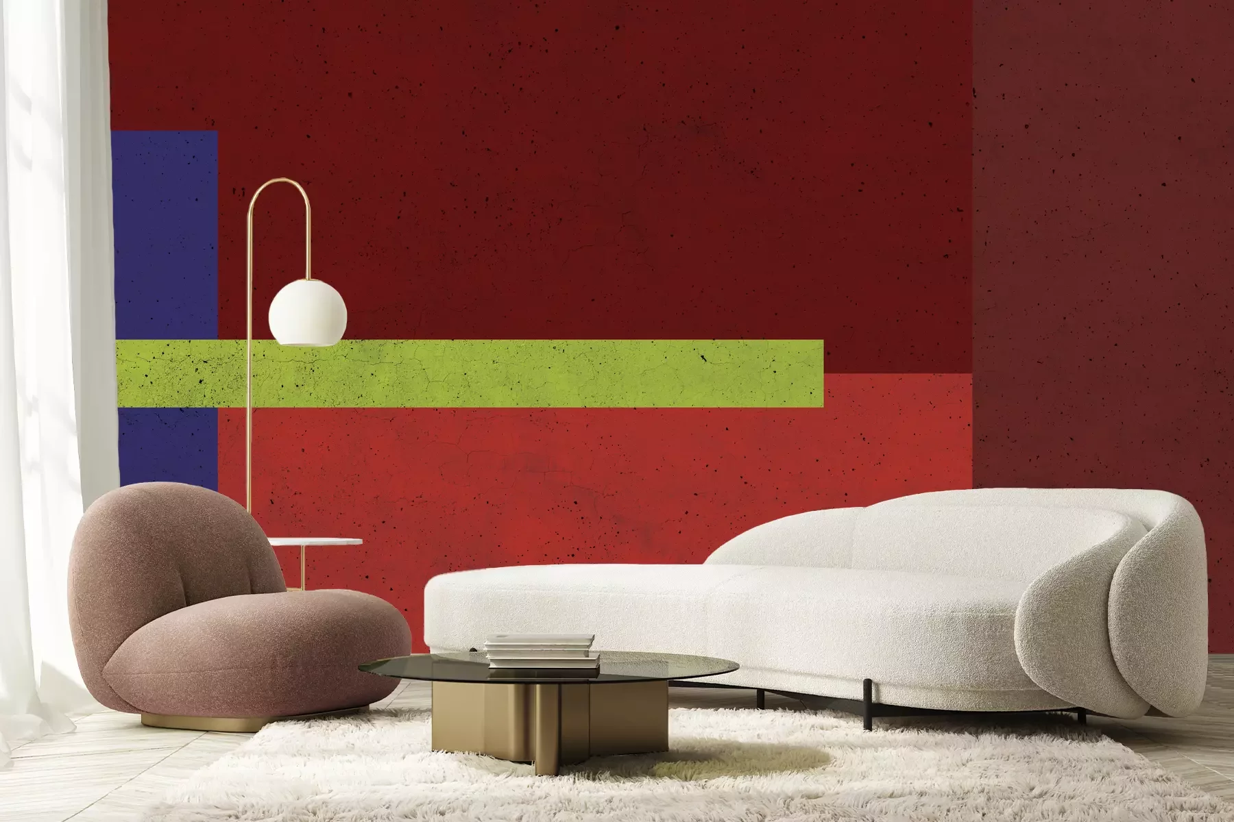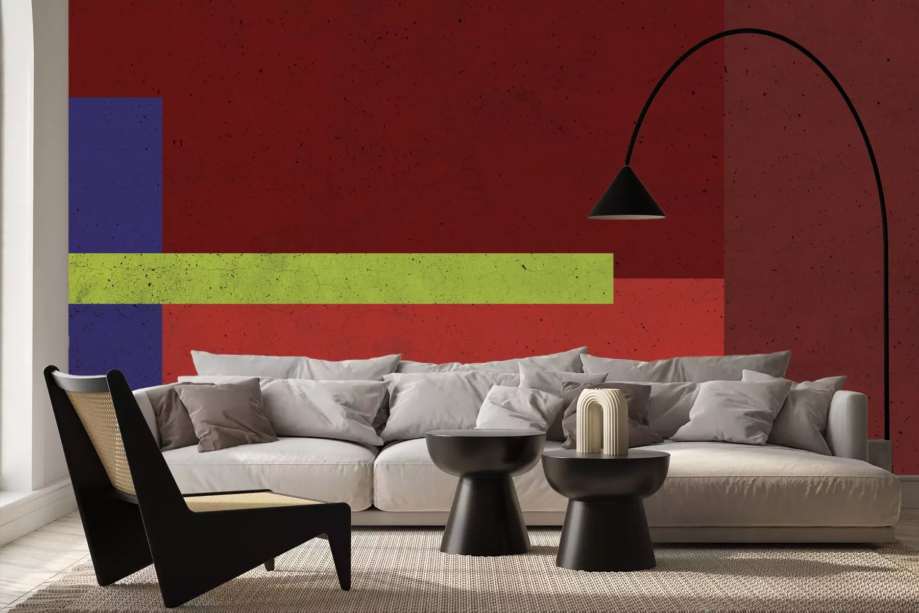 Rechthoeken in rode tinten met betoneffect