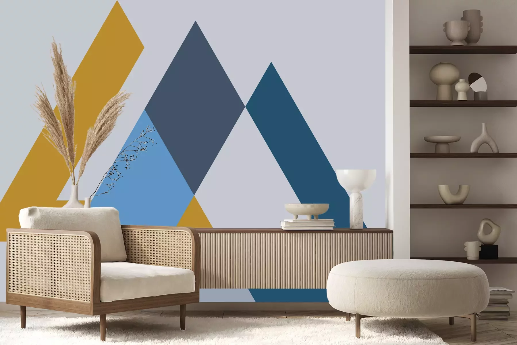 Het materiaal Premium+ is een gestructureerd vinyl op vlies met een gewicht van 255 g/m², dat kleine oneffenheden in de muur effectief camoufleert. De subtiele structuur van fijn zand geeft het oppervlak een exclusieve uitstraling, terwijl de halfmatte afwerking de diepte van de kleuren benadrukt. Het materiaal is dampdoorlatend, waardoor het ook in de keuken en badkamer kan worden gebruikt. De maximale breedte van één baan bedraagt 100 cm – bij grotere afmetingen wordt het fotobehang in meerdere gelijke banen verdeeld. De lijm wordt direct op de muur aangebracht en het behang wordt rand-aan-rand geplakt, wat zorgt voor een esthetisch resultaat zonder zichtbare naden. Het oppervlak kan gemakkelijk worden schoongemaakt door het voorzichtig af te nemen met een vochtige doek.