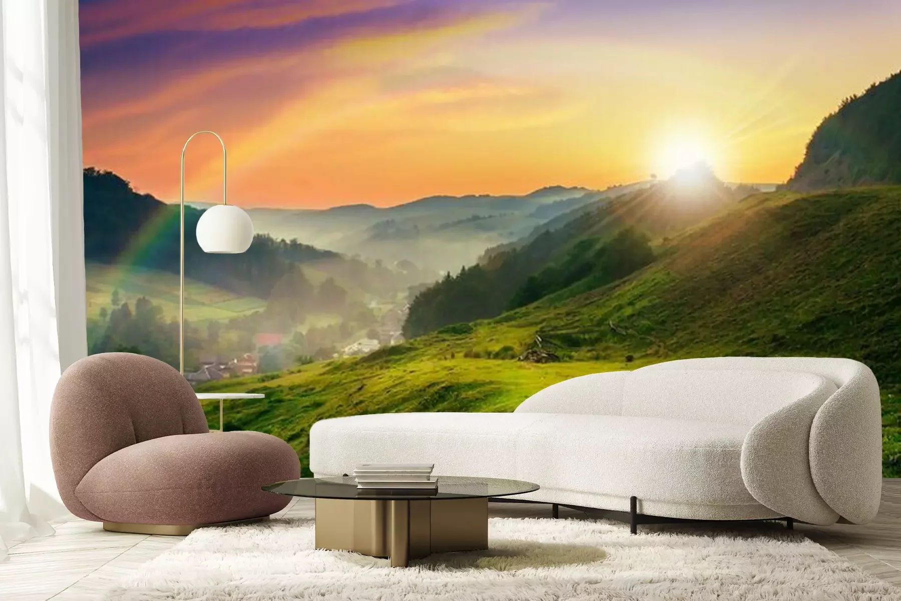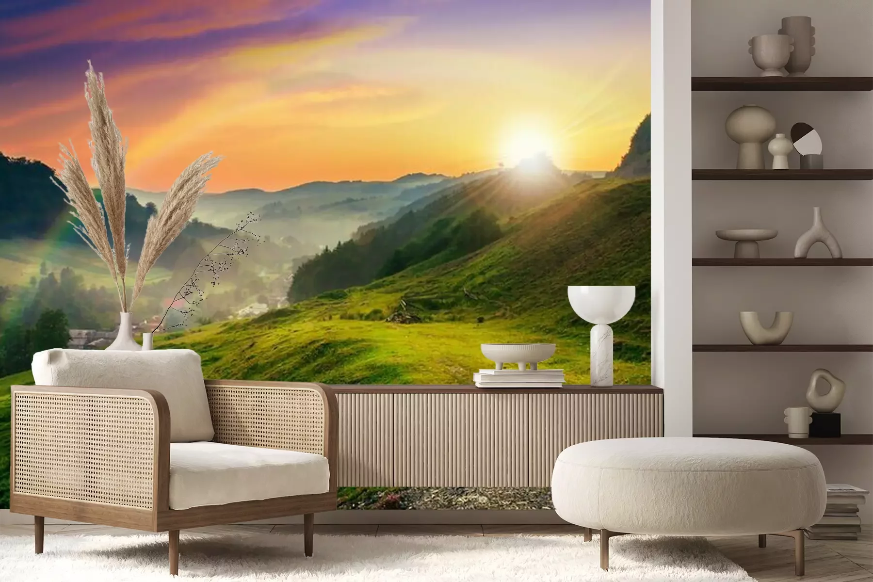 Bergen bij dageraadFotobehang