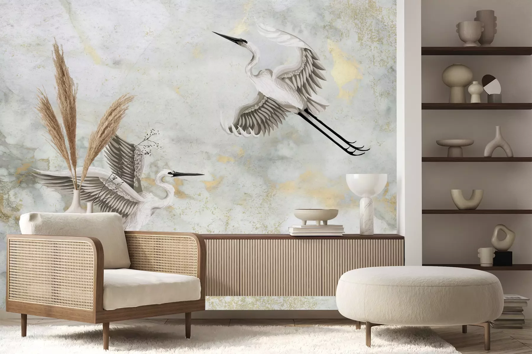Het materiaal Premium+ is een gestructureerd vinyl op vlies met een gewicht van 255 g/m², dat kleine oneffenheden in de muur effectief camoufleert. De subtiele structuur van fijn zand geeft het oppervlak een exclusieve uitstraling, terwijl de halfmatte afwerking de diepte van de kleuren benadrukt. Het materiaal is dampdoorlatend, waardoor het ook in de keuken en badkamer kan worden gebruikt. De maximale breedte van één baan bedraagt 100 cm – bij grotere afmetingen wordt het fotobehang in meerdere gelijke banen verdeeld. De lijm wordt direct op de muur aangebracht en het behang wordt rand-aan-rand geplakt, wat zorgt voor een esthetisch resultaat zonder zichtbare naden. Het oppervlak kan gemakkelijk worden schoongemaakt door het voorzichtig af te nemen met een vochtige doek.