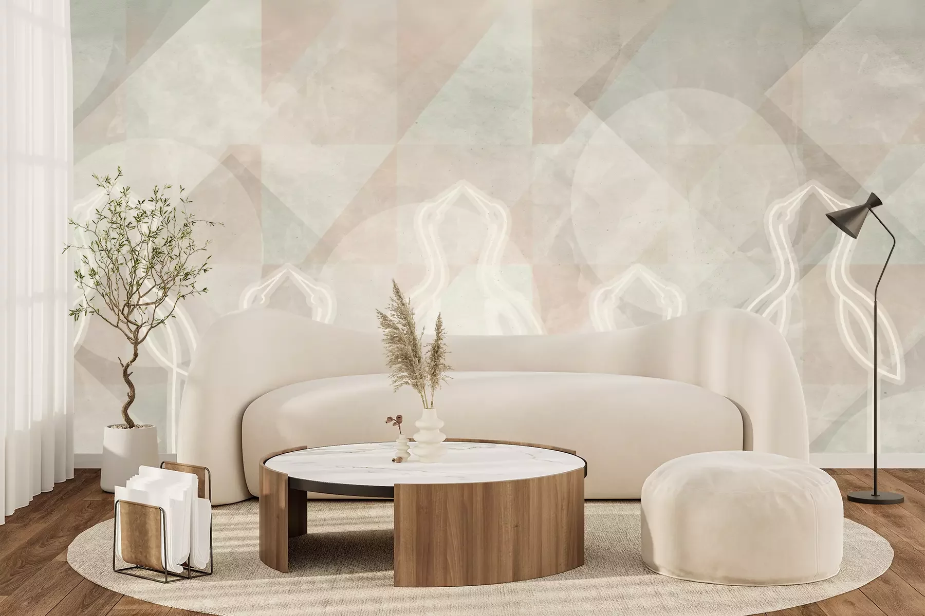 Het materiaal Premium+ is een gestructureerd vinyl op vlies met een gewicht van 255 g/m², dat kleine oneffenheden in de muur effectief camoufleert. De subtiele structuur van fijn zand geeft het oppervlak een exclusieve uitstraling, terwijl de halfmatte afwerking de diepte van de kleuren benadrukt. Het materiaal is dampdoorlatend, waardoor het ook in de keuken en badkamer kan worden gebruikt. De maximale breedte van één baan bedraagt 100 cm – bij grotere afmetingen wordt het fotobehang in meerdere gelijke banen verdeeld. De lijm wordt direct op de muur aangebracht en het behang wordt rand-aan-rand geplakt, wat zorgt voor een esthetisch resultaat zonder zichtbare naden. Het oppervlak kan gemakkelijk worden schoongemaakt door het voorzichtig af te nemen met een vochtige doek.