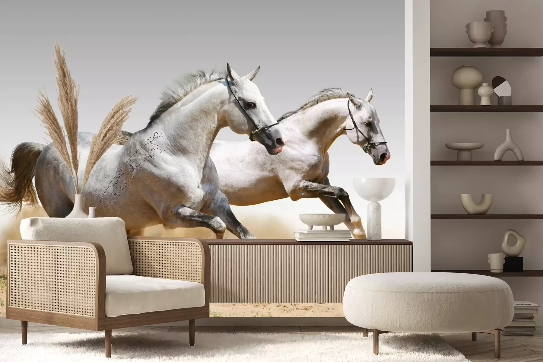 Het materiaal Premium+ is een gestructureerd vinyl op vlies met een gewicht van 255 g/m², dat kleine oneffenheden in de muur effectief camoufleert. De subtiele structuur van fijn zand geeft het oppervlak een exclusieve uitstraling, terwijl de halfmatte afwerking de diepte van de kleuren benadrukt. Het materiaal is dampdoorlatend, waardoor het ook in de keuken en badkamer kan worden gebruikt. De maximale breedte van één baan bedraagt 100 cm – bij grotere afmetingen wordt het fotobehang in meerdere gelijke banen verdeeld. De lijm wordt direct op de muur aangebracht en het behang wordt rand-aan-rand geplakt, wat zorgt voor een esthetisch resultaat zonder zichtbare naden. Het oppervlak kan gemakkelijk worden schoongemaakt door het voorzichtig af te nemen met een vochtige doek.