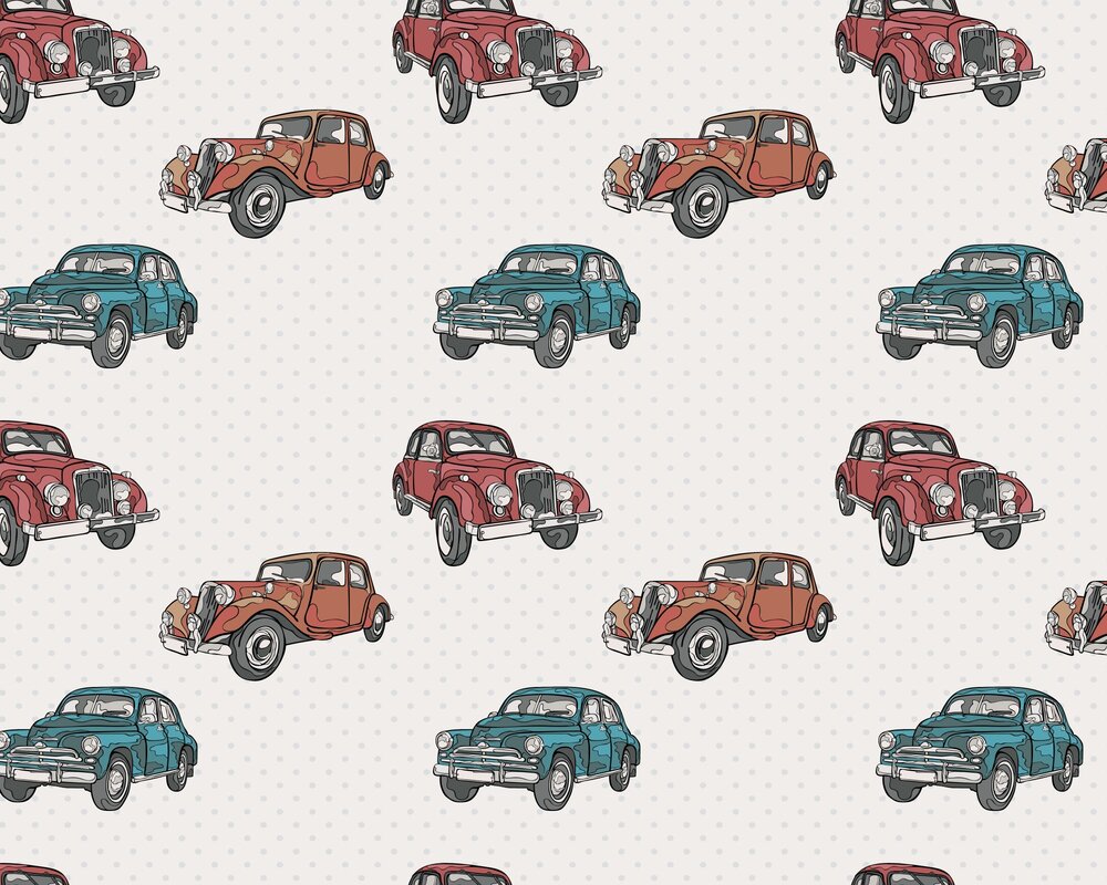 Fotobehang: Retro-auto's op een minimalistische stippenachtergrond