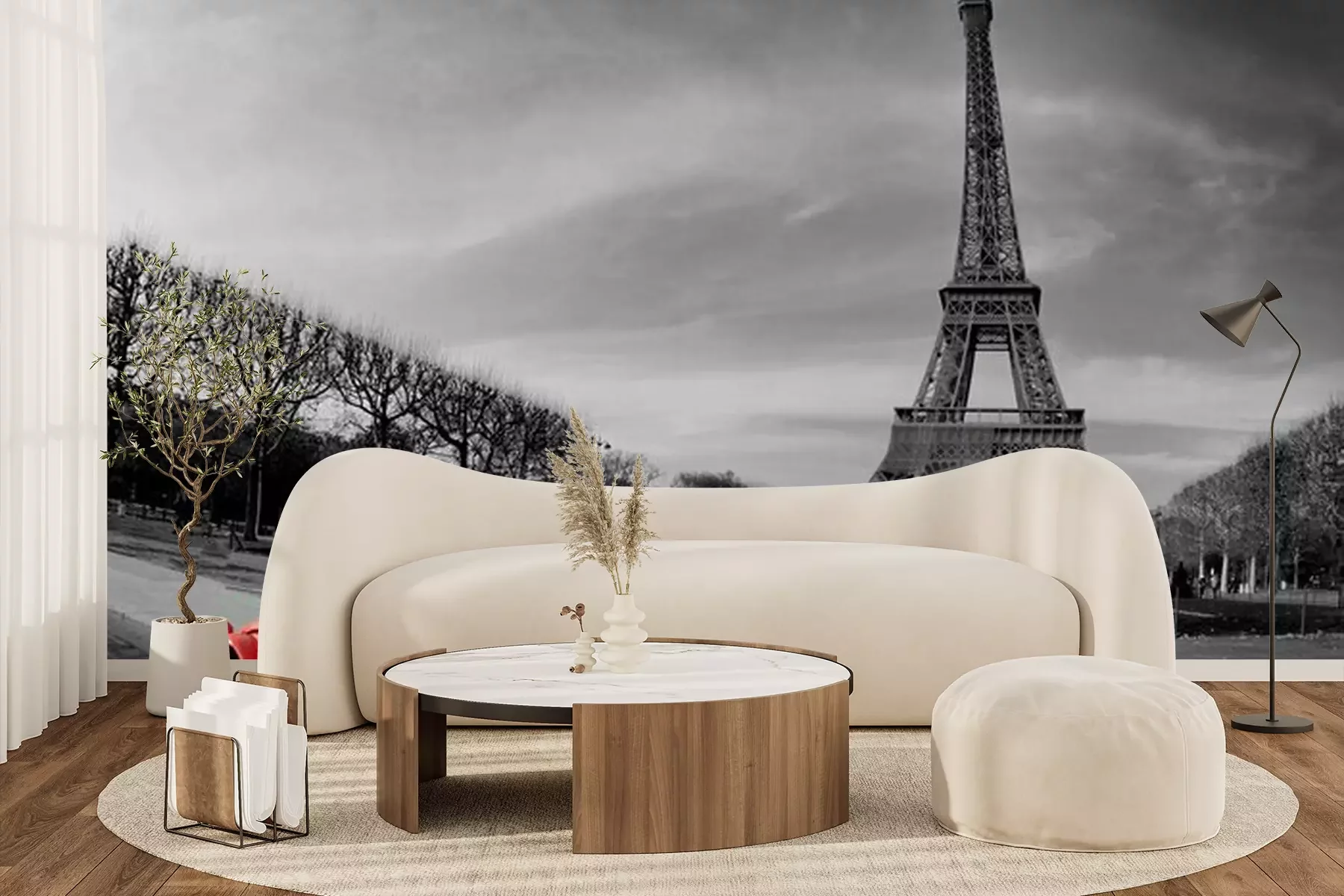 Moderne architectuur en een rode autoProbleemloze bezorging verzorgd door vertrouwde vervoerders