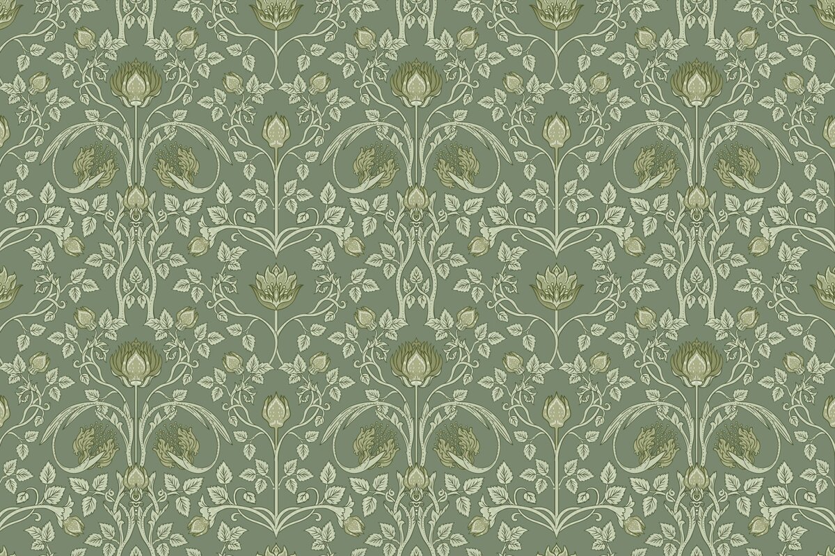 Fotobehang: Rijkelijk versierd patroon met bladeren en bloemen