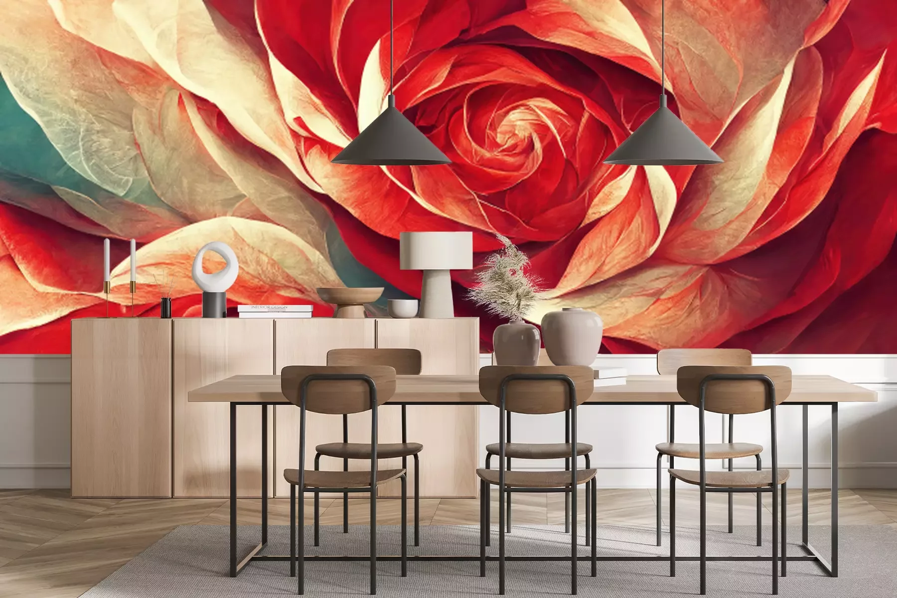 Fotobehang Rode bloemblaadjes van een abstracte roos