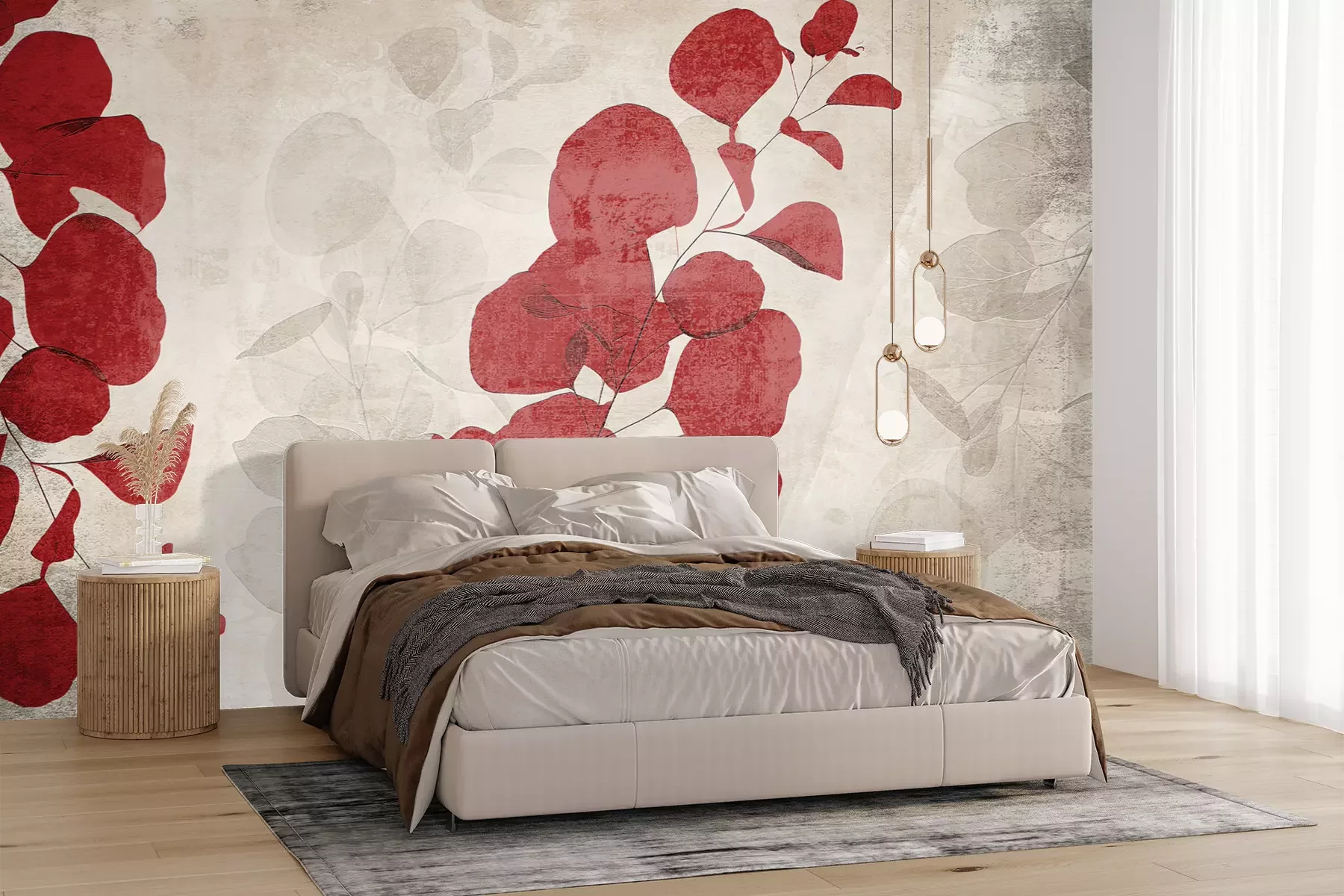 Het materiaal Premium+ is een gestructureerd vinyl op vlies met een gewicht van 255 g/m², dat kleine oneffenheden in de muur effectief camoufleert. De subtiele structuur van fijn zand geeft het oppervlak een exclusieve uitstraling, terwijl de halfmatte afwerking de diepte van de kleuren benadrukt. Het materiaal is dampdoorlatend, waardoor het ook in de keuken en badkamer kan worden gebruikt. De maximale breedte van één baan bedraagt 100 cm – bij grotere afmetingen wordt het fotobehang in meerdere gelijke banen verdeeld. De lijm wordt direct op de muur aangebracht en het behang wordt rand-aan-rand geplakt, wat zorgt voor een esthetisch resultaat zonder zichtbare naden. Het oppervlak kan gemakkelijk worden schoongemaakt door het voorzichtig af te nemen met een vochtige doek.
