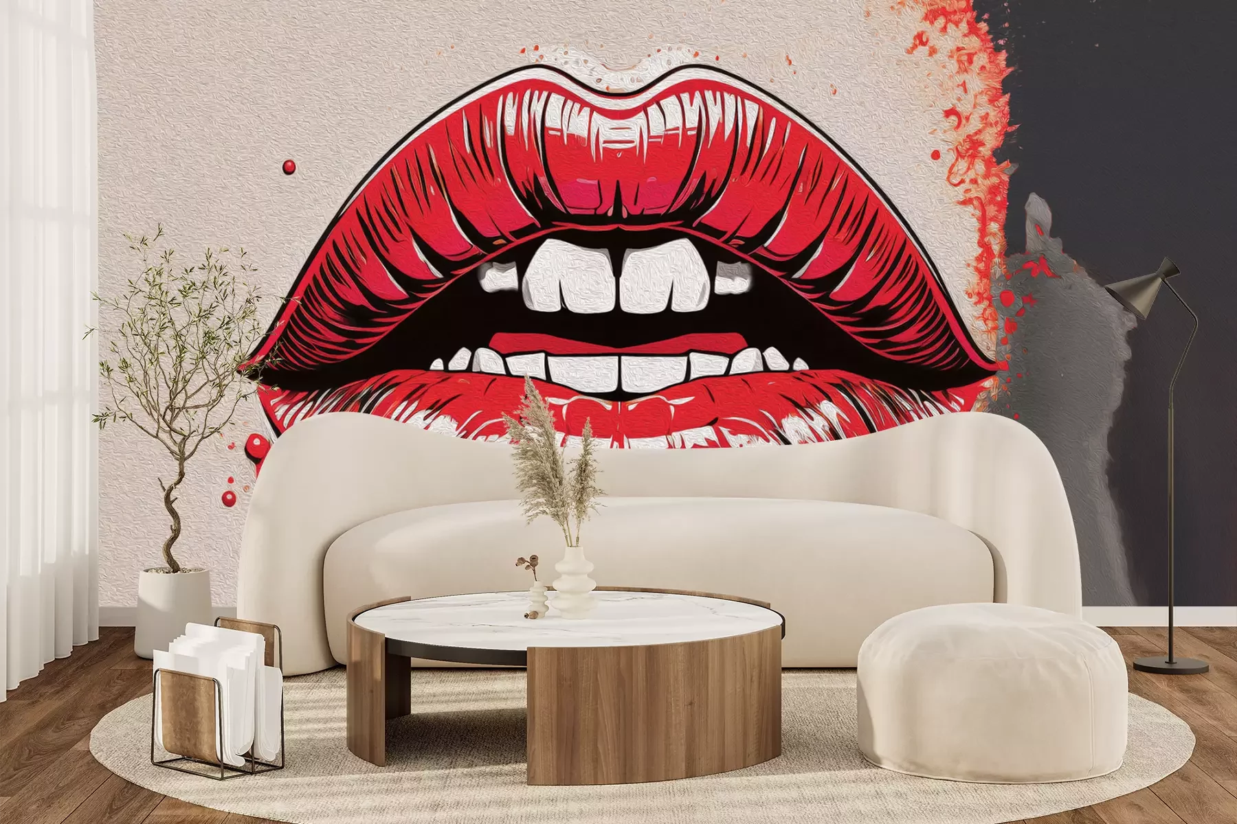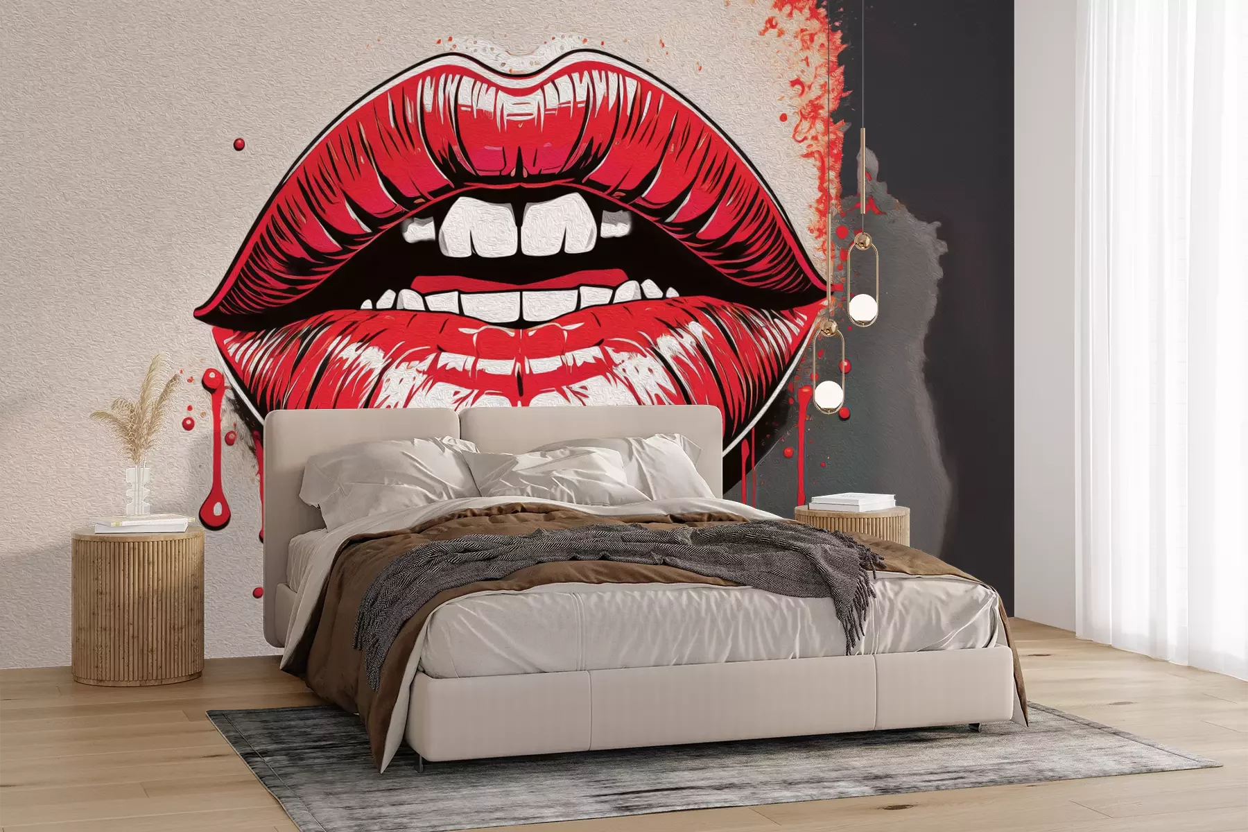 Het materiaal Premium+ is een gestructureerd vinyl op vlies met een gewicht van 255 g/m², dat kleine oneffenheden in de muur effectief camoufleert. De subtiele structuur van fijn zand geeft het oppervlak een exclusieve uitstraling, terwijl de halfmatte afwerking de diepte van de kleuren benadrukt. Het materiaal is dampdoorlatend, waardoor het ook in de keuken en badkamer kan worden gebruikt. De maximale breedte van één baan bedraagt 100 cm – bij grotere afmetingen wordt het fotobehang in meerdere gelijke banen verdeeld. De lijm wordt direct op de muur aangebracht en het behang wordt rand-aan-rand geplakt, wat zorgt voor een esthetisch resultaat zonder zichtbare naden. Het oppervlak kan gemakkelijk worden schoongemaakt door het voorzichtig af te nemen met een vochtige doek.