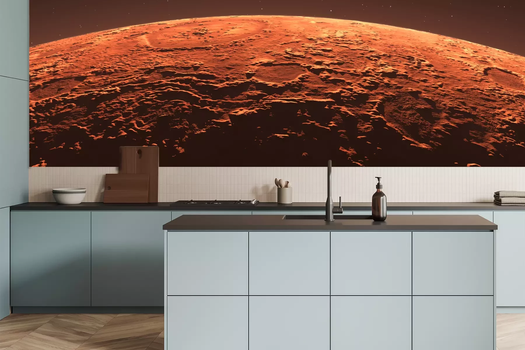 Het materiaal Premium is een glad vinyl op vlies, dat bestand is tegen uitrekken en vervorming. Het is dampdoorlatend – de muren kunnen vrij ademen – waardoor het geschikt is voor gebruik in de keuken en badkamer. Bij vervuiling kan het materiaal worden afgenomen met een vochtige doek. De maximale breedte van één baan bedraagt 95 of 105 cm, afhankelijk van de beschikbaarheid. Montage vindt plaats met de rand-aan-rand methode, wat een esthetisch resultaat zonder zichtbare naden oplevert. Omdat de lijm rechtstreeks op de muur wordt aangebracht, verloopt de installatie van het fotobehang snel en eenvoudig.
