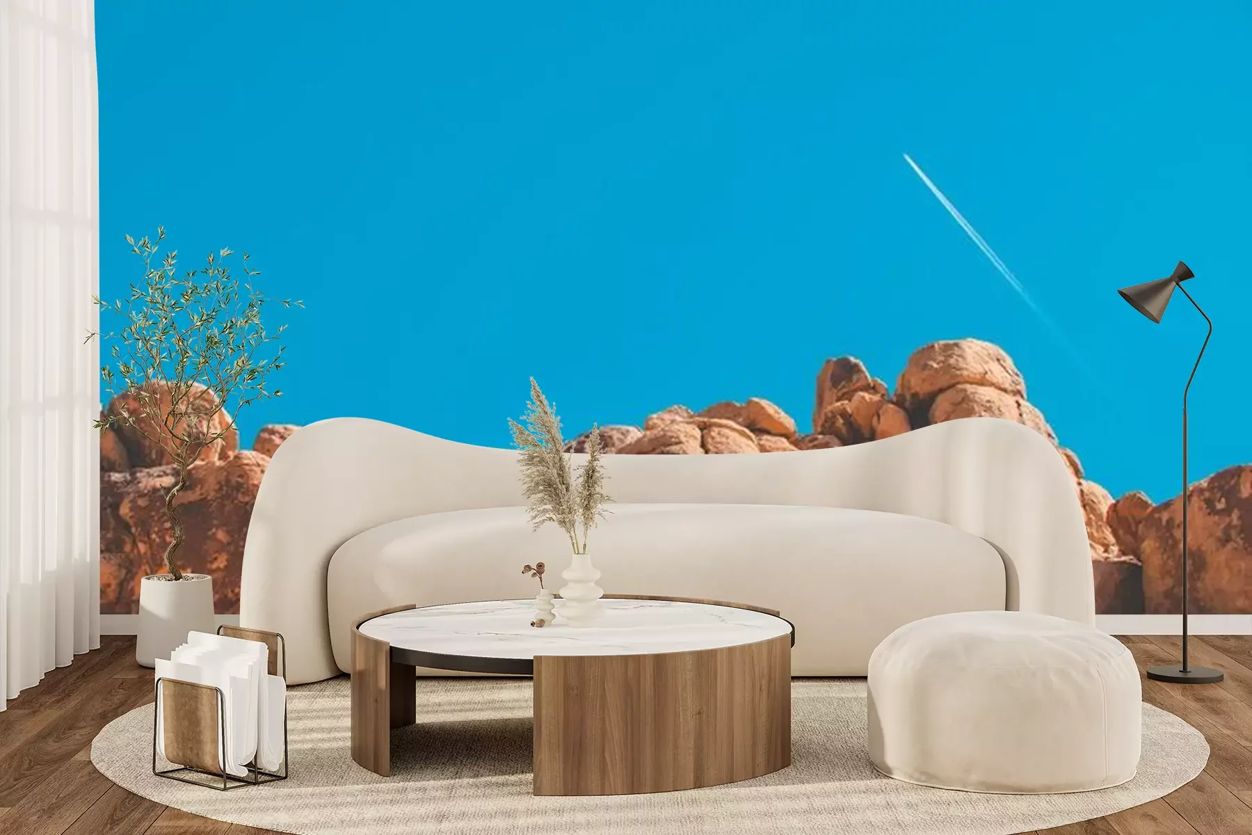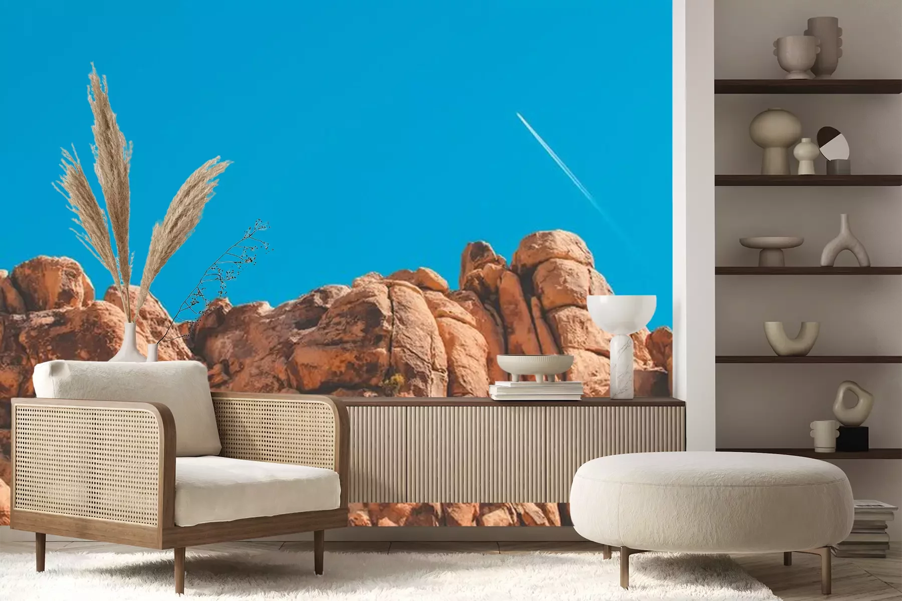Fotobehang Rode rotsen op een hemelachtergrond