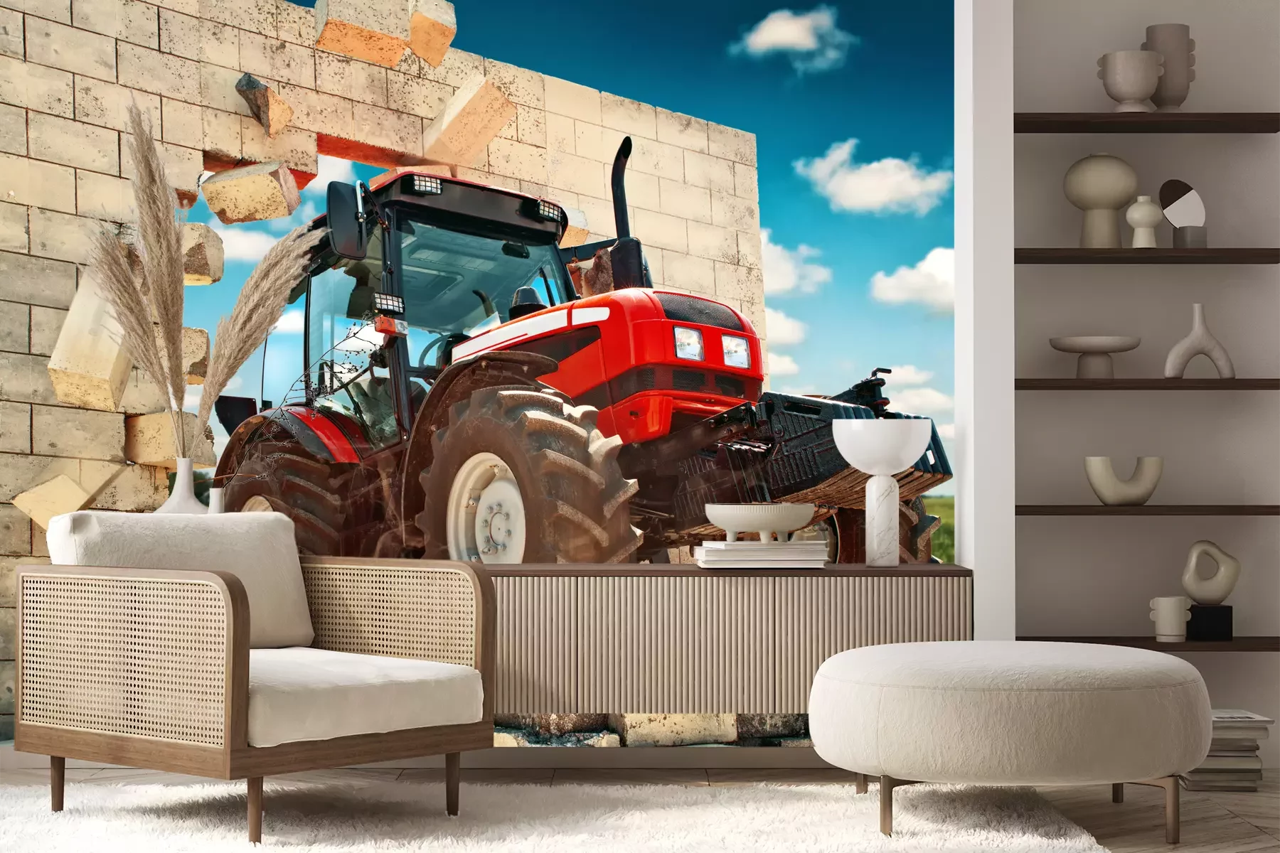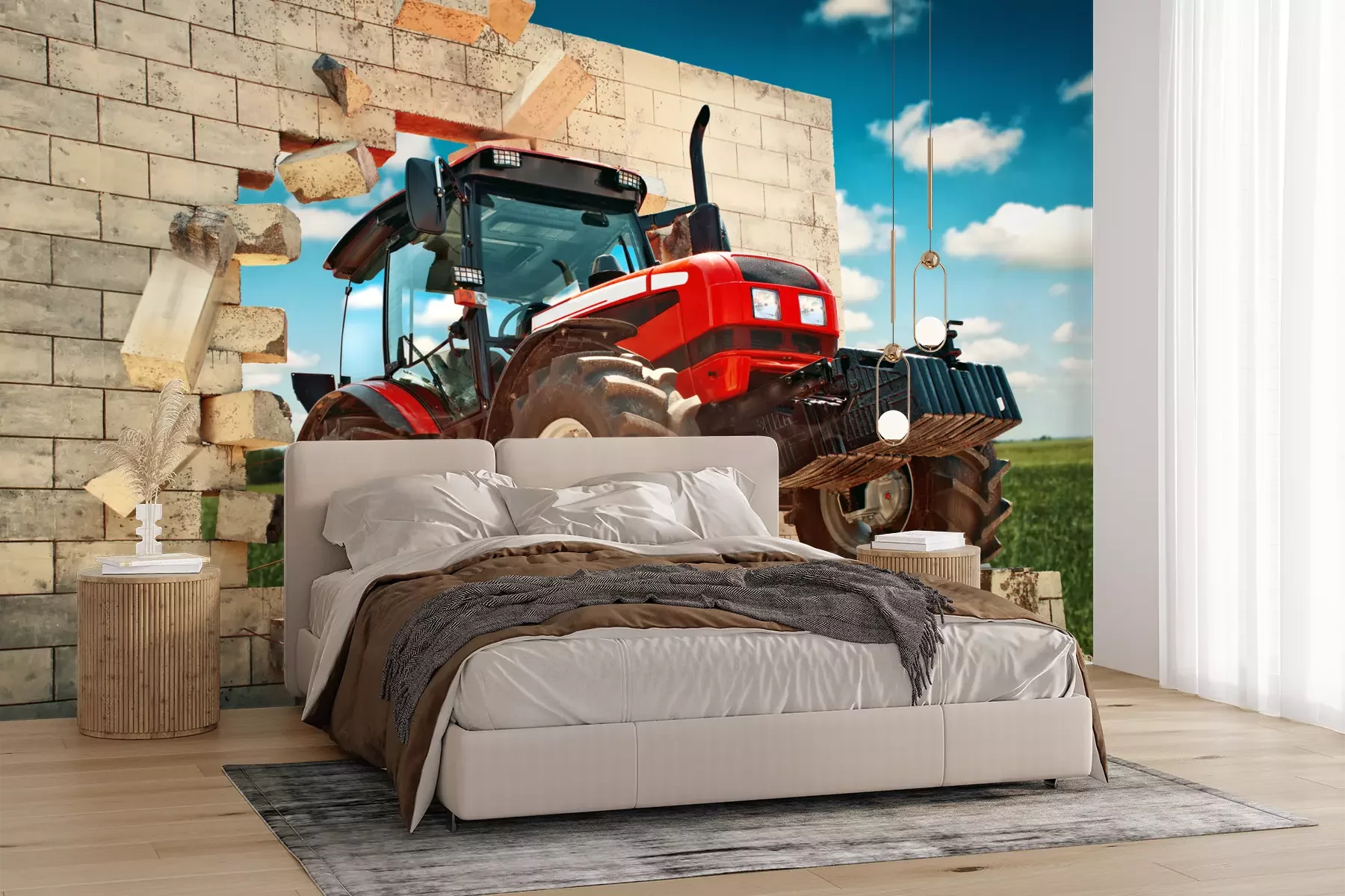 Het materiaal Premium+ is een gestructureerd vinyl op vlies met een gewicht van 255 g/m², dat kleine oneffenheden in de muur effectief camoufleert. De subtiele structuur van fijn zand geeft het oppervlak een exclusieve uitstraling, terwijl de halfmatte afwerking de diepte van de kleuren benadrukt. Het materiaal is dampdoorlatend, waardoor het ook in de keuken en badkamer kan worden gebruikt. De maximale breedte van één baan bedraagt 100 cm – bij grotere afmetingen wordt het fotobehang in meerdere gelijke banen verdeeld. De lijm wordt direct op de muur aangebracht en het behang wordt rand-aan-rand geplakt, wat zorgt voor een esthetisch resultaat zonder zichtbare naden. Het oppervlak kan gemakkelijk worden schoongemaakt door het voorzichtig af te nemen met een vochtige doek.