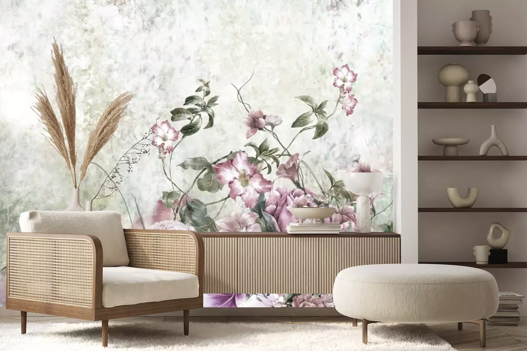 Het materiaal Premium+ is een gestructureerd vinyl op vlies met een gewicht van 255 g/m², dat kleine oneffenheden in de muur effectief camoufleert. De subtiele structuur van fijn zand geeft het oppervlak een exclusieve uitstraling, terwijl de halfmatte afwerking de diepte van de kleuren benadrukt. Het materiaal is dampdoorlatend, waardoor het ook in de keuken en badkamer kan worden gebruikt. De maximale breedte van één baan bedraagt 100 cm – bij grotere afmetingen wordt het fotobehang in meerdere gelijke banen verdeeld. De lijm wordt direct op de muur aangebracht en het behang wordt rand-aan-rand geplakt, wat zorgt voor een esthetisch resultaat zonder zichtbare naden. Het oppervlak kan gemakkelijk worden schoongemaakt door het voorzichtig af te nemen met een vochtige doek.