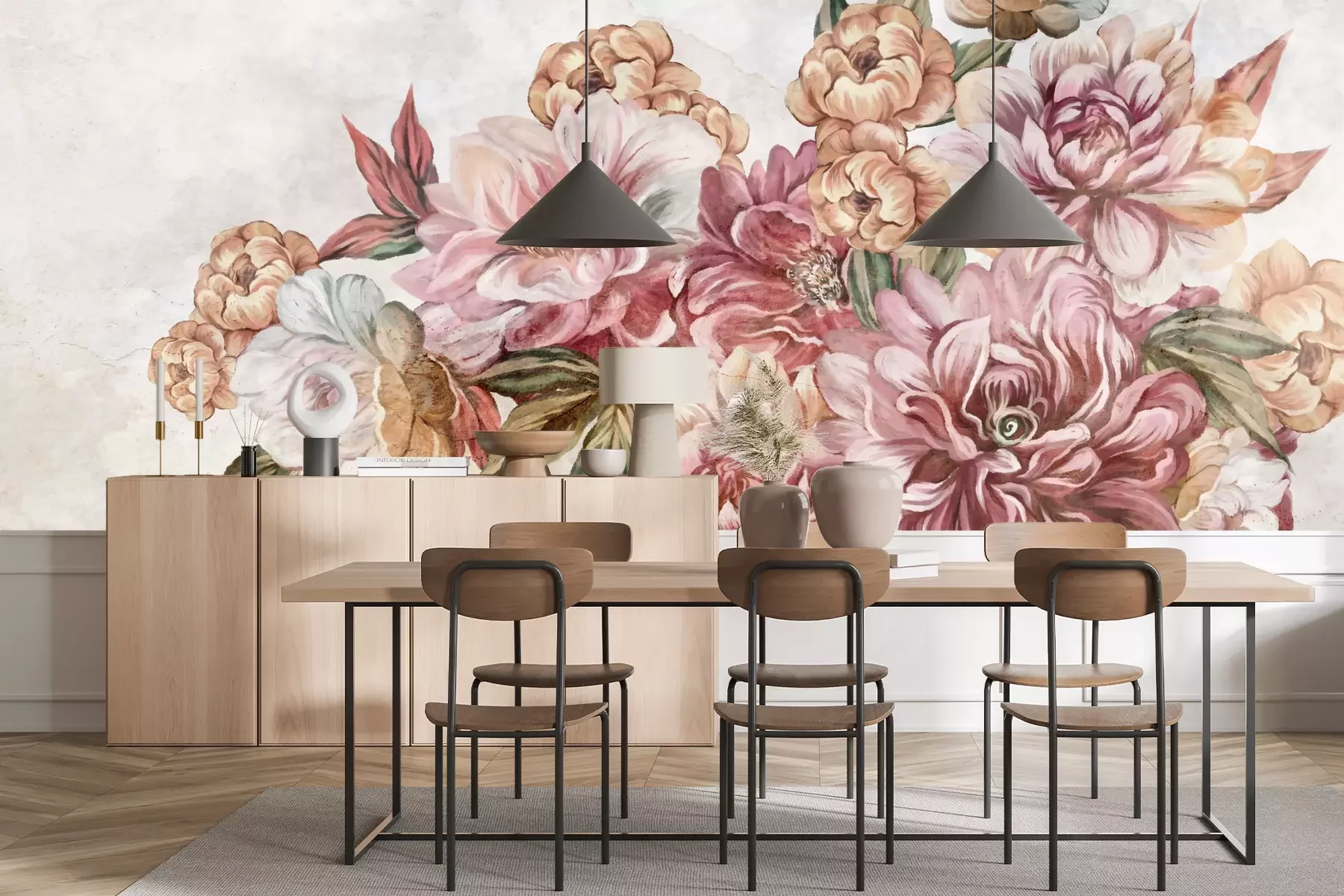 Het materiaal Standard is een hoogwaardig latexmateriaal met een glad, mat oppervlak. Dankzij de HP Latex-printtechnologie zijn de kleuren intens, duurzaam en UV-bestendig, waardoor het patroon jarenlang een onberispelijke uitstraling behoudt. Vervuilde oppervlakken kunnen voorzichtig worden afgeveegd met een droge doek. De maximale breedte van één baan bedraagt 95 cm of 105 cm – afhankelijk van de bestelde fotobehangbreedte. Bij grotere afmetingen wordt het patroon verdeeld over meerdere gelijkmatige banen. Het fotobehang wordt rand-aan-randaangebracht, wat vrijwel onzichtbare naden mogelijk maakt.
