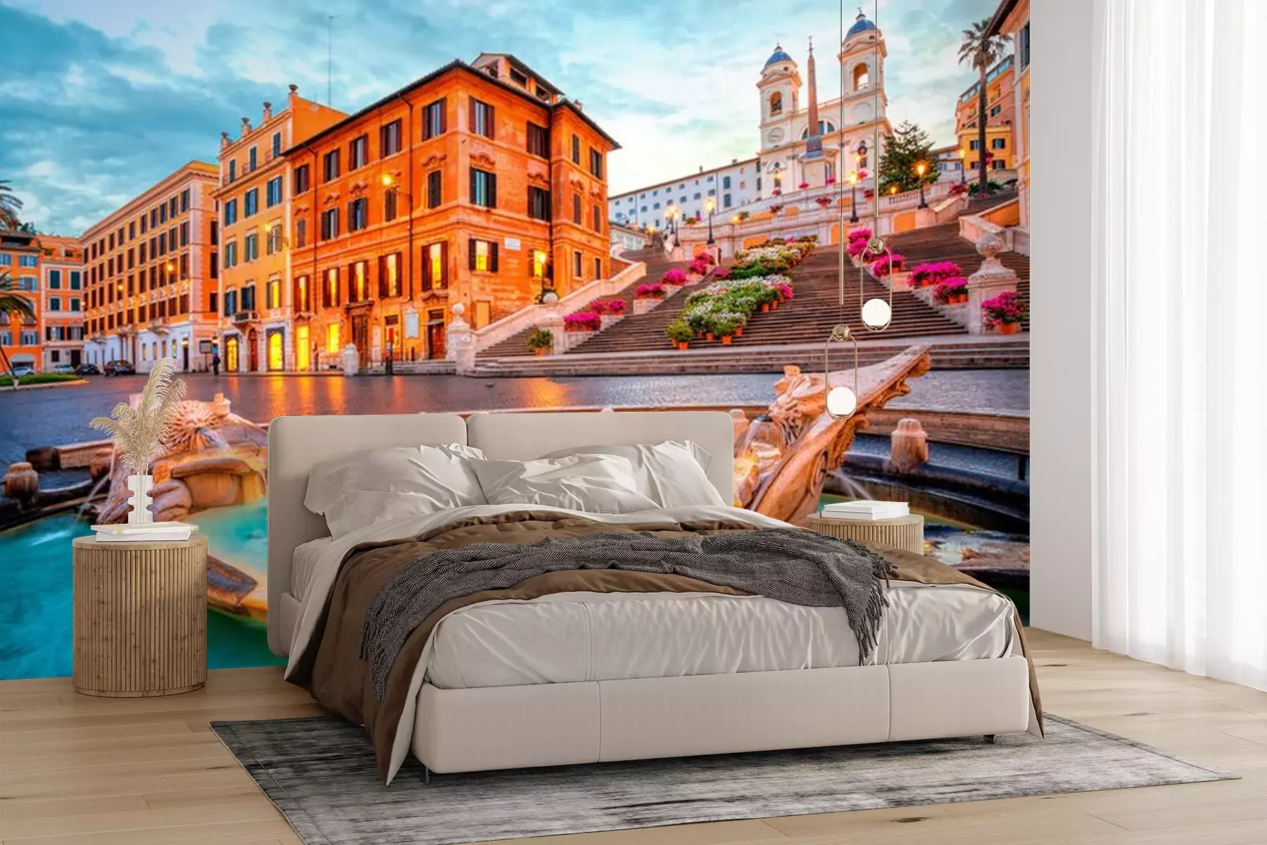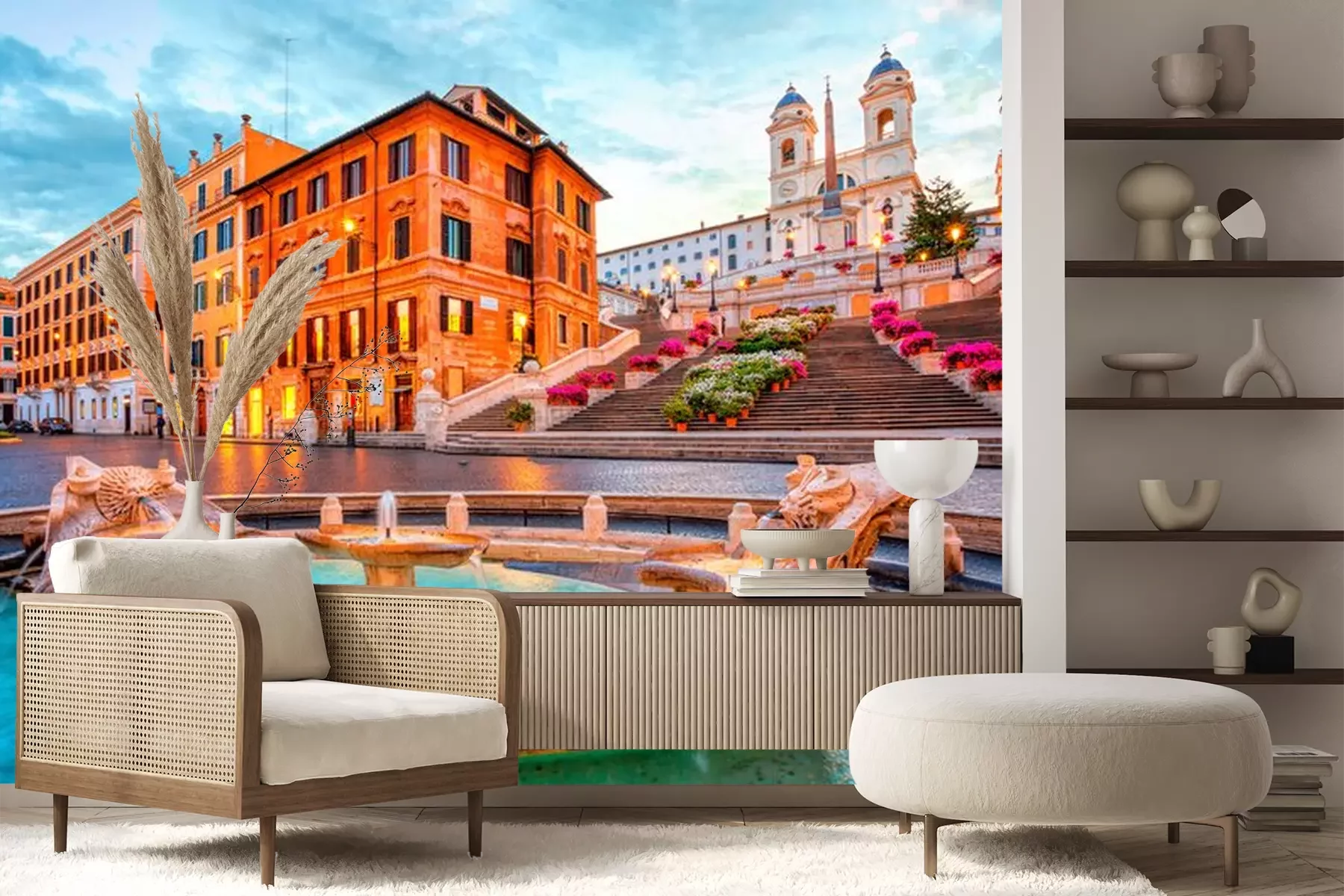 Fotobehang Romeinse architectuur met een fontein