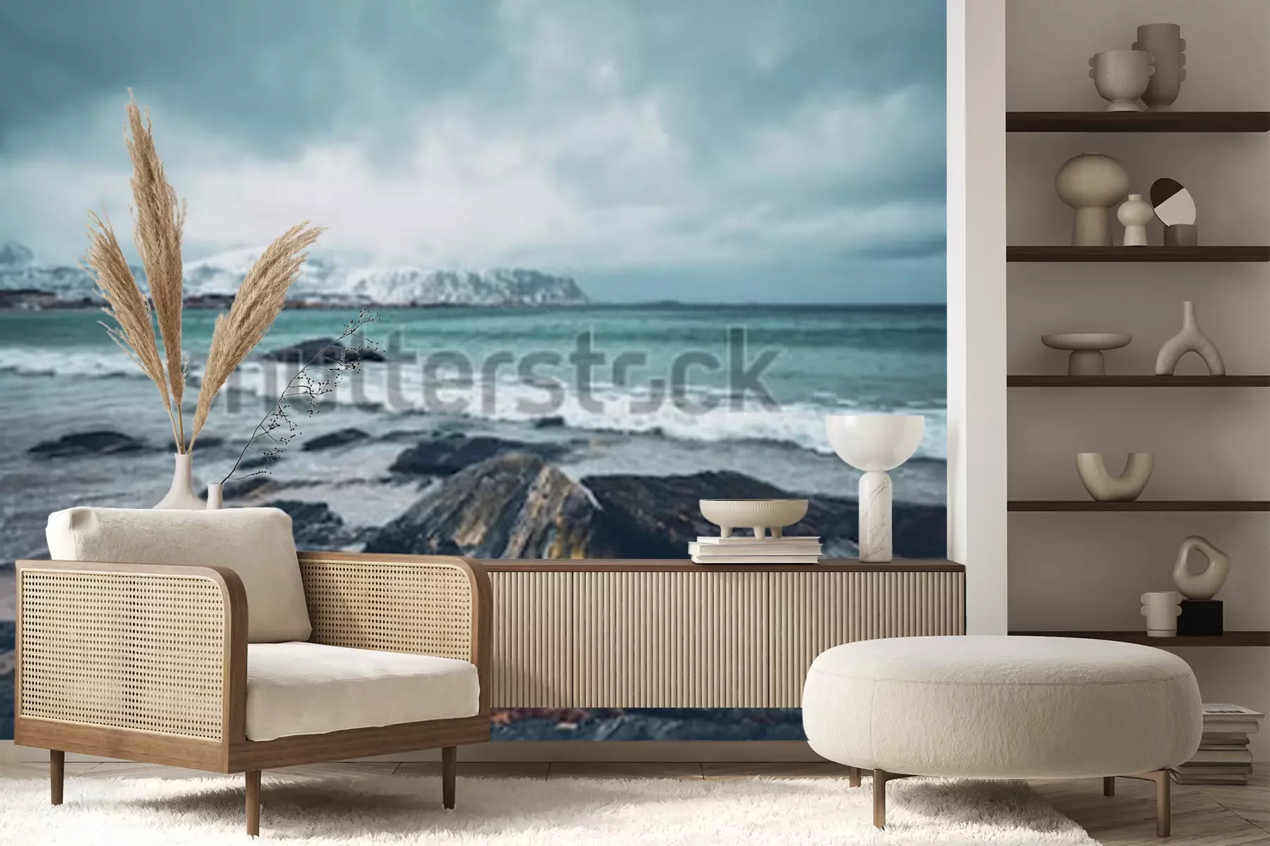 Fotobehang Rotsachtige zee in Noorwegen