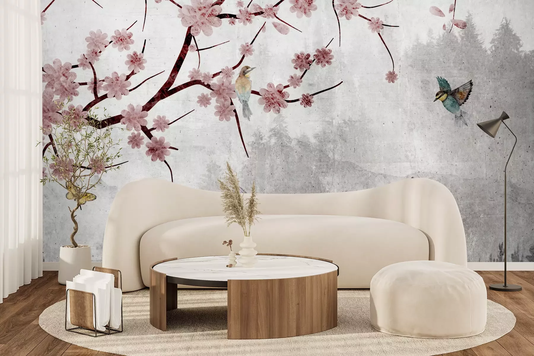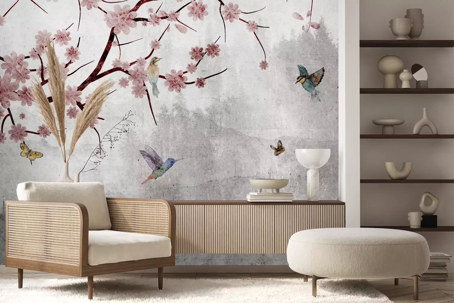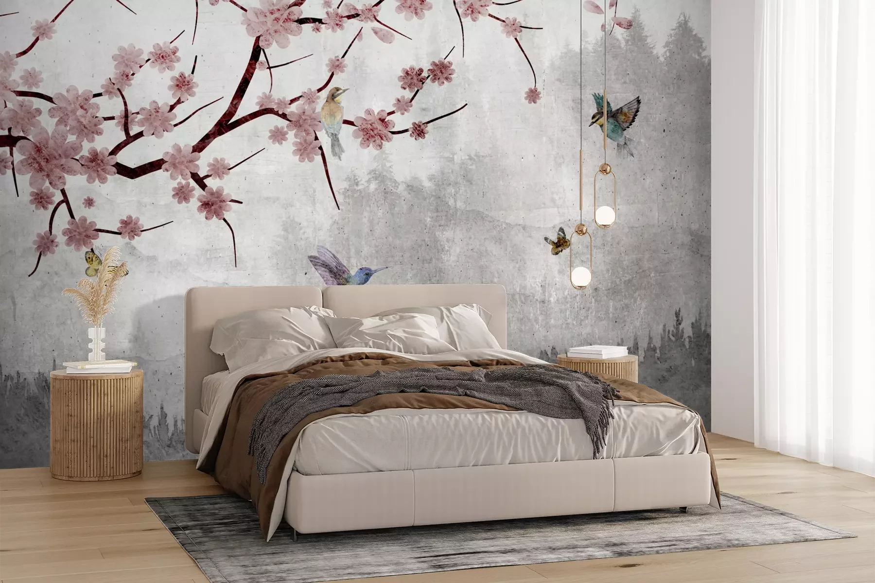 Het materiaal Premium+ is een gestructureerd vinyl op vlies met een gewicht van 255 g/m², dat kleine oneffenheden in de muur effectief camoufleert. De subtiele structuur van fijn zand geeft het oppervlak een exclusieve uitstraling, terwijl de halfmatte afwerking de diepte van de kleuren benadrukt. Het materiaal is dampdoorlatend, waardoor het ook in de keuken en badkamer kan worden gebruikt. De maximale breedte van één baan bedraagt 100 cm – bij grotere afmetingen wordt het fotobehang in meerdere gelijke banen verdeeld. De lijm wordt direct op de muur aangebracht en het behang wordt rand-aan-rand geplakt, wat zorgt voor een esthetisch resultaat zonder zichtbare naden. Het oppervlak kan gemakkelijk worden schoongemaakt door het voorzichtig af te nemen met een vochtige doek.