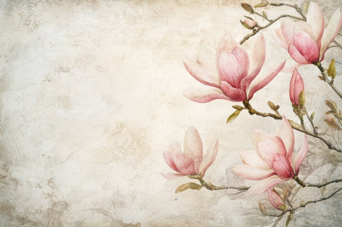 Fotobehang: Roze magnolia's in retrostijl