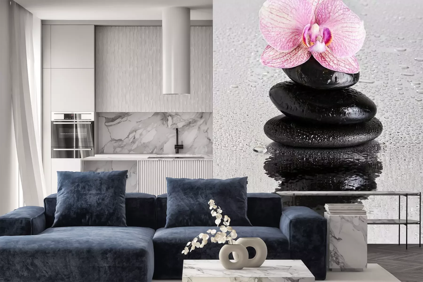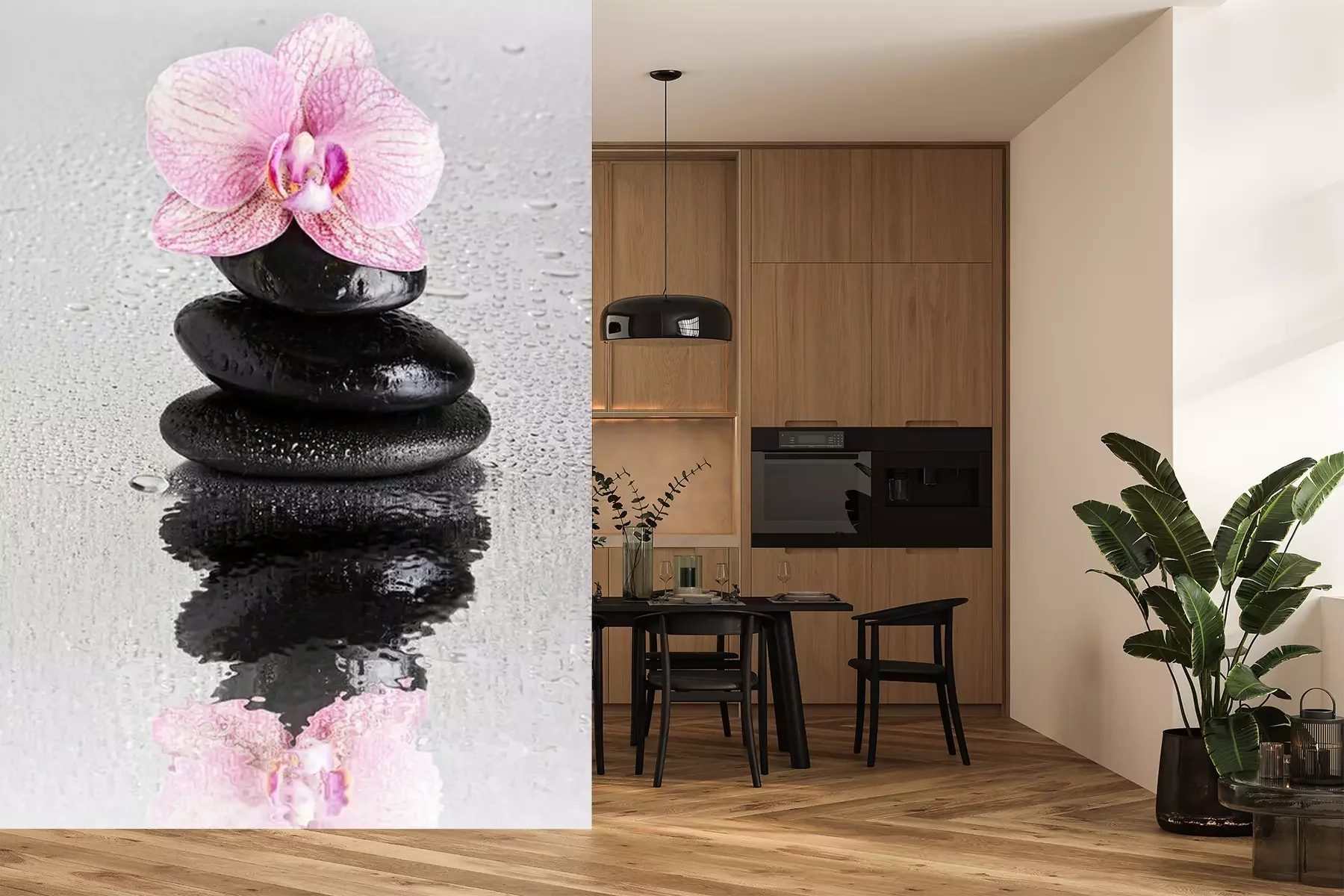 Het materiaal Premium+ is een gestructureerd vinyl op vlies met een gewicht van 255 g/m², dat kleine oneffenheden in de muur effectief camoufleert. De subtiele structuur van fijn zand geeft het oppervlak een exclusieve uitstraling, terwijl de halfmatte afwerking de diepte van de kleuren benadrukt. Het materiaal is dampdoorlatend, waardoor het ook in de keuken en badkamer kan worden gebruikt. De maximale breedte van één baan bedraagt 100 cm – bij grotere afmetingen wordt het fotobehang in meerdere gelijke banen verdeeld. De lijm wordt direct op de muur aangebracht en het behang wordt rand-aan-rand geplakt, wat zorgt voor een esthetisch resultaat zonder zichtbare naden. Het oppervlak kan gemakkelijk worden schoongemaakt door het voorzichtig af te nemen met een vochtige doek.