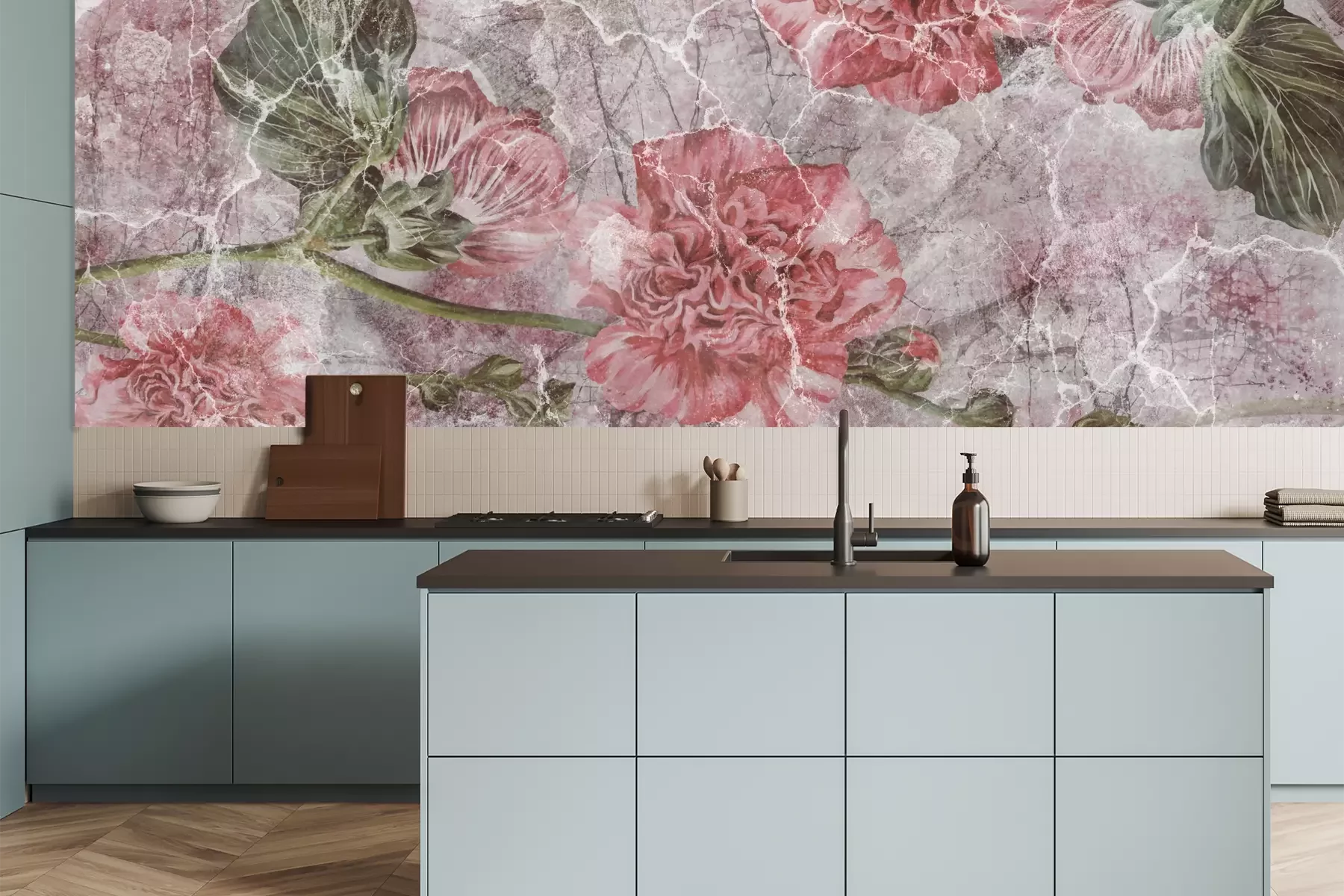 Het materiaal Premium is een glad vinyl op vlies, dat bestand is tegen uitrekken en vervorming. Het is dampdoorlatend – de muren kunnen vrij ademen – waardoor het geschikt is voor gebruik in de keuken en badkamer. Bij vervuiling kan het materiaal worden afgenomen met een vochtige doek. De maximale breedte van één baan bedraagt 95 of 105 cm, afhankelijk van de beschikbaarheid. Montage vindt plaats met de rand-aan-rand methode, wat een esthetisch resultaat zonder zichtbare naden oplevert. Omdat de lijm rechtstreeks op de muur wordt aangebracht, verloopt de installatie van het fotobehang snel en eenvoudig.