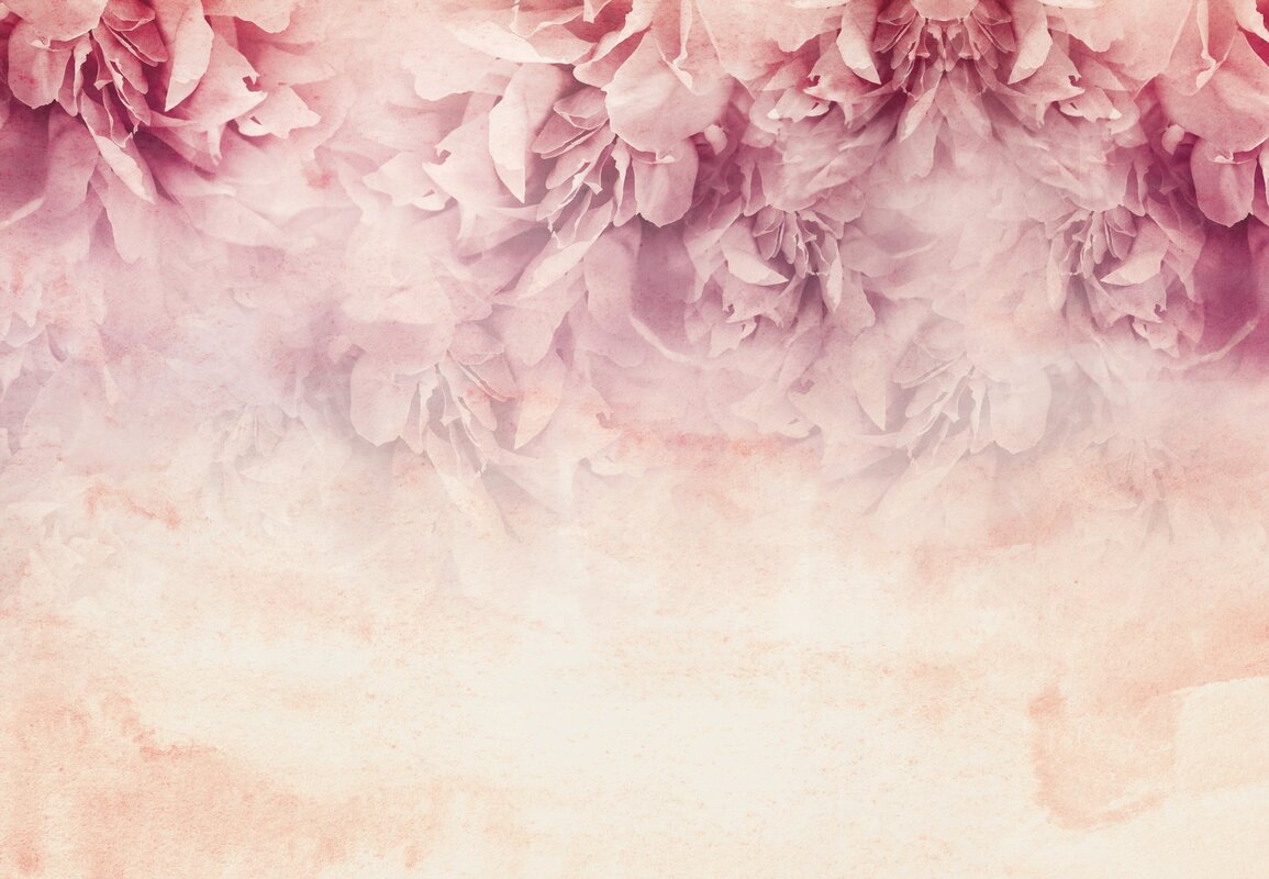 Fotobehang: Roze pioenrozen op een gestructureerde achtergrond met een aquareleffect