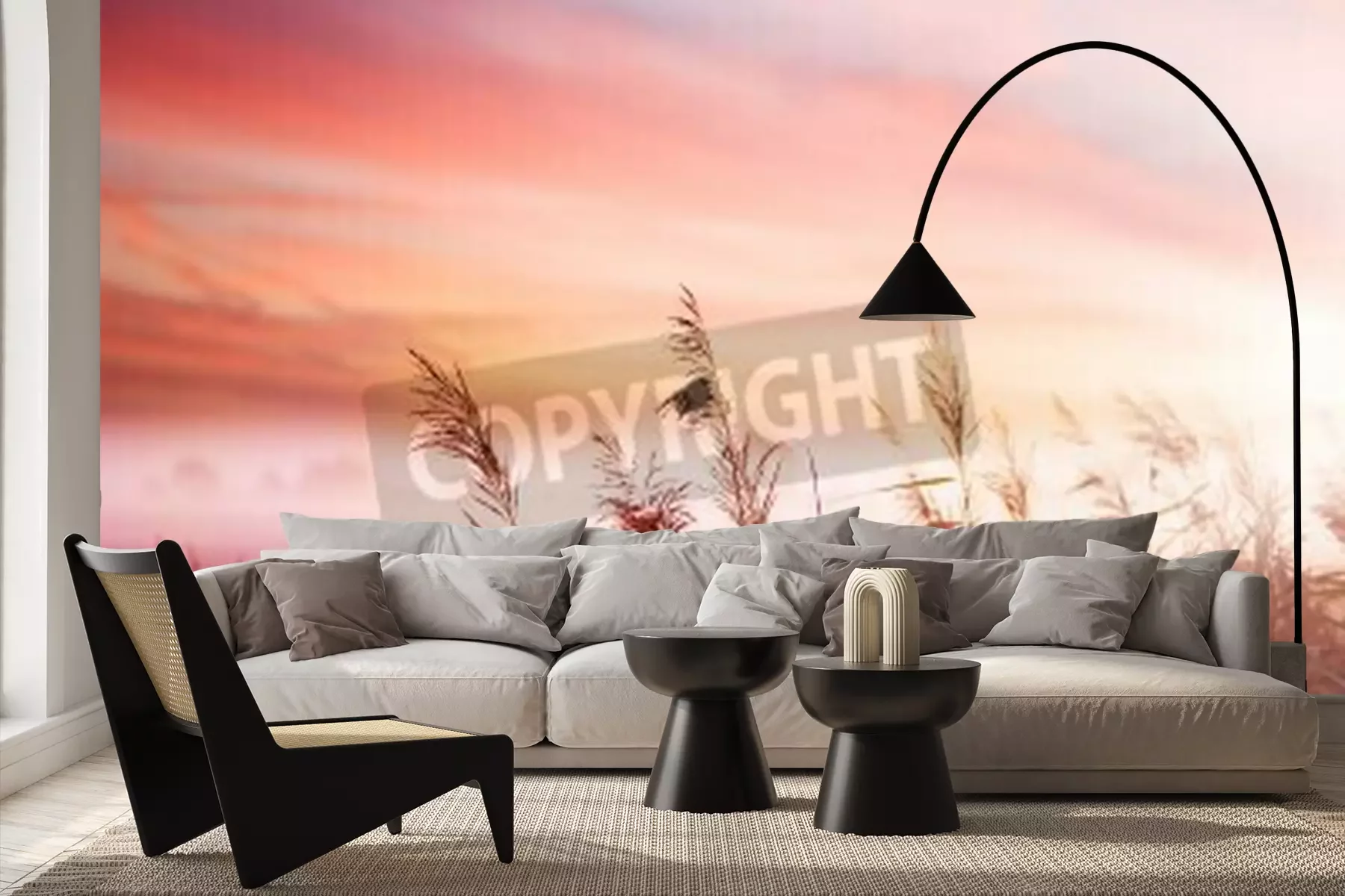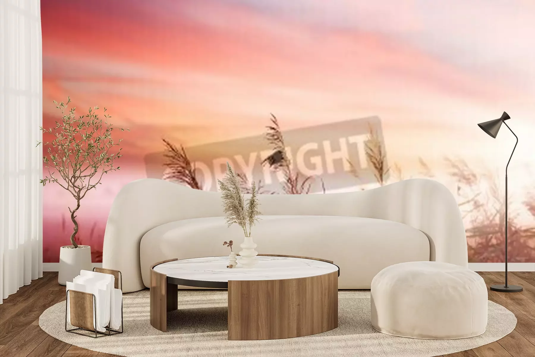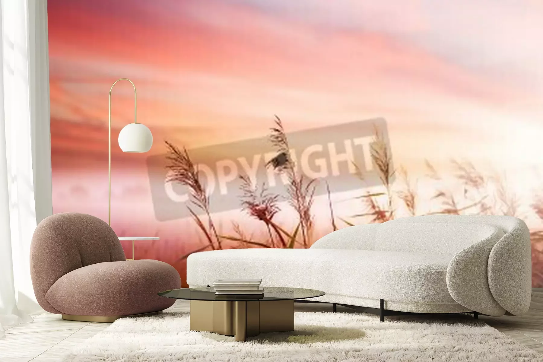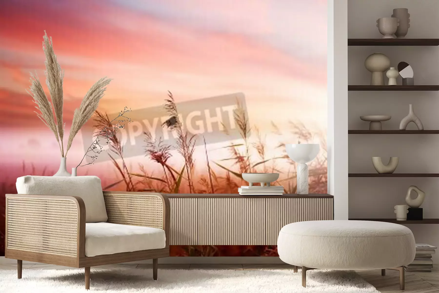 Fotobehang Roze zonsopgang op een veld