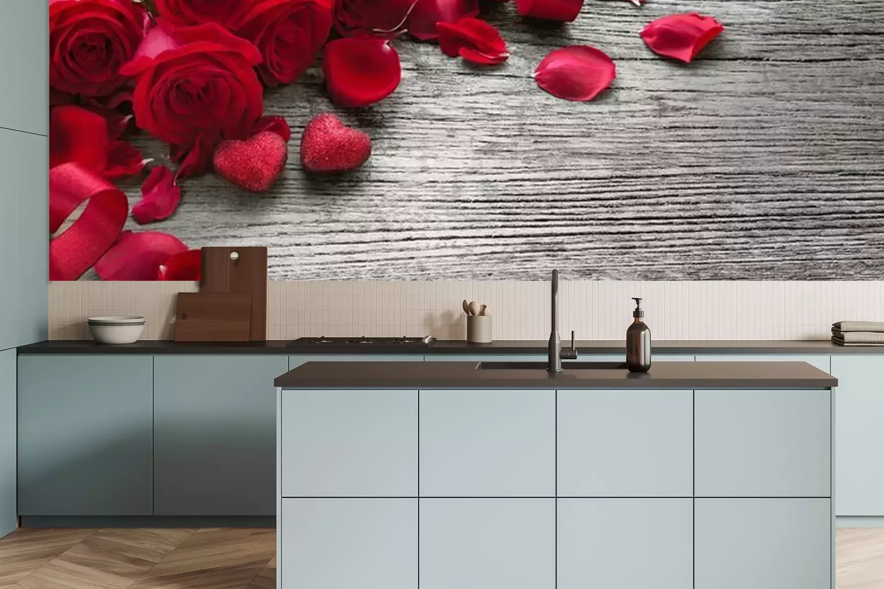 Het materiaal Premium is een glad vinyl op vlies, dat bestand is tegen uitrekken en vervorming. Het is dampdoorlatend – de muren kunnen vrij ademen – waardoor het geschikt is voor gebruik in de keuken en badkamer. Bij vervuiling kan het materiaal worden afgenomen met een vochtige doek. De maximale breedte van één baan bedraagt 95 of 105 cm, afhankelijk van de beschikbaarheid. Montage vindt plaats met de rand-aan-rand methode, wat een esthetisch resultaat zonder zichtbare naden oplevert. Omdat de lijm rechtstreeks op de muur wordt aangebracht, verloopt de installatie van het fotobehang snel en eenvoudig.