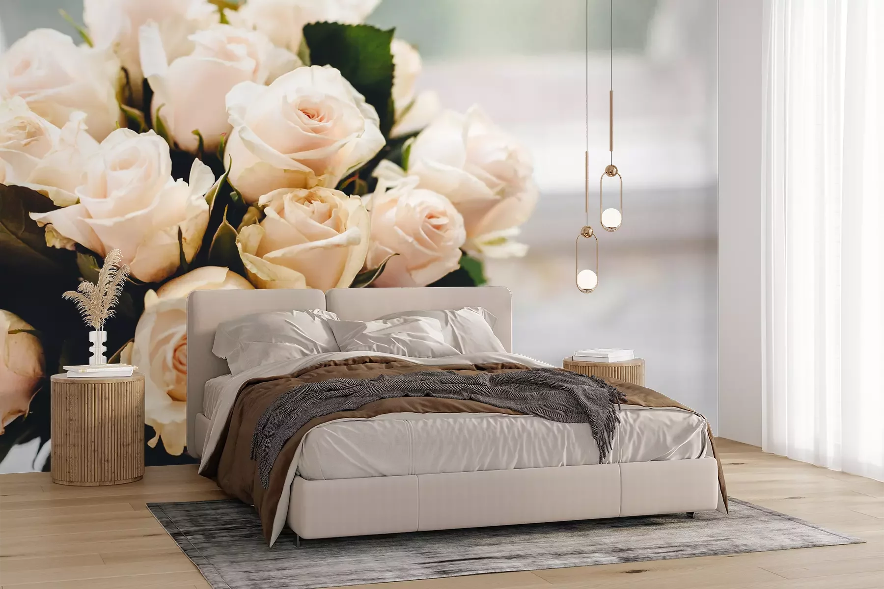 Het materiaal Premium+ is een gestructureerd vinyl op vlies met een gewicht van 255 g/m², dat kleine oneffenheden in de muur effectief camoufleert. De subtiele structuur van fijn zand geeft het oppervlak een exclusieve uitstraling, terwijl de halfmatte afwerking de diepte van de kleuren benadrukt. Het materiaal is dampdoorlatend, waardoor het ook in de keuken en badkamer kan worden gebruikt. De maximale breedte van één baan bedraagt 100 cm – bij grotere afmetingen wordt het fotobehang in meerdere gelijke banen verdeeld. De lijm wordt direct op de muur aangebracht en het behang wordt rand-aan-rand geplakt, wat zorgt voor een esthetisch resultaat zonder zichtbare naden. Het oppervlak kan gemakkelijk worden schoongemaakt door het voorzichtig af te nemen met een vochtige doek.