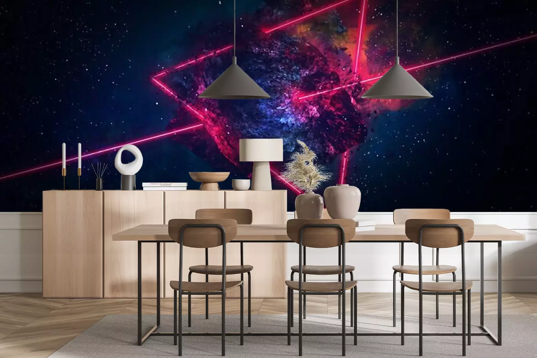 Het materiaal Standard is een hoogwaardig latexmateriaal met een glad, mat oppervlak. Dankzij de HP Latex-printtechnologie zijn de kleuren intens, duurzaam en UV-bestendig, waardoor het patroon jarenlang een onberispelijke uitstraling behoudt. Vervuilde oppervlakken kunnen voorzichtig worden afgeveegd met een droge doek. De maximale breedte van één baan bedraagt 95 cm of 105 cm – afhankelijk van de bestelde fotobehangbreedte. Bij grotere afmetingen wordt het patroon verdeeld over meerdere gelijkmatige banen. Het fotobehang wordt rand-aan-randaangebracht, wat vrijwel onzichtbare naden mogelijk maakt.