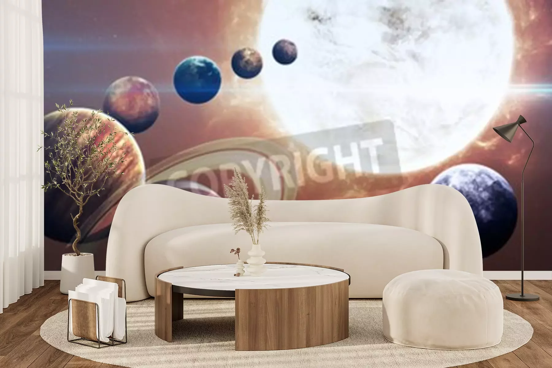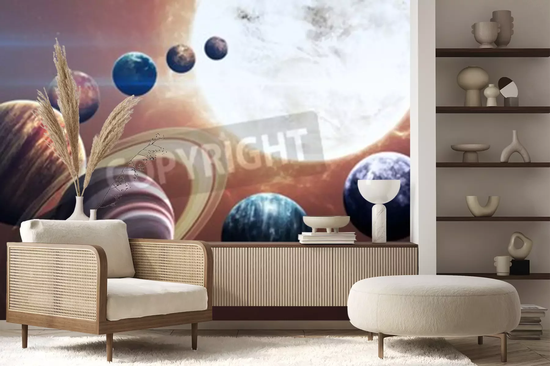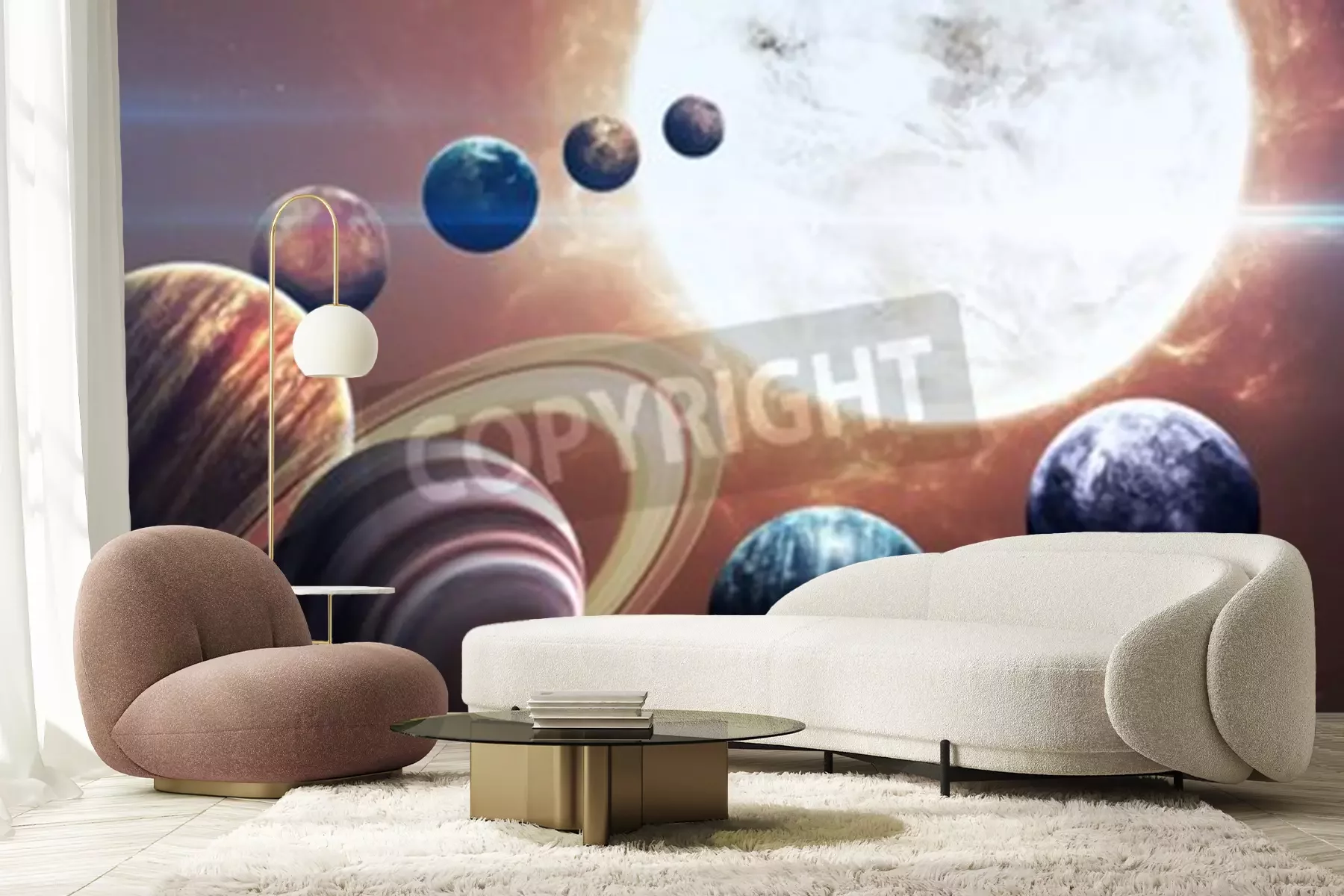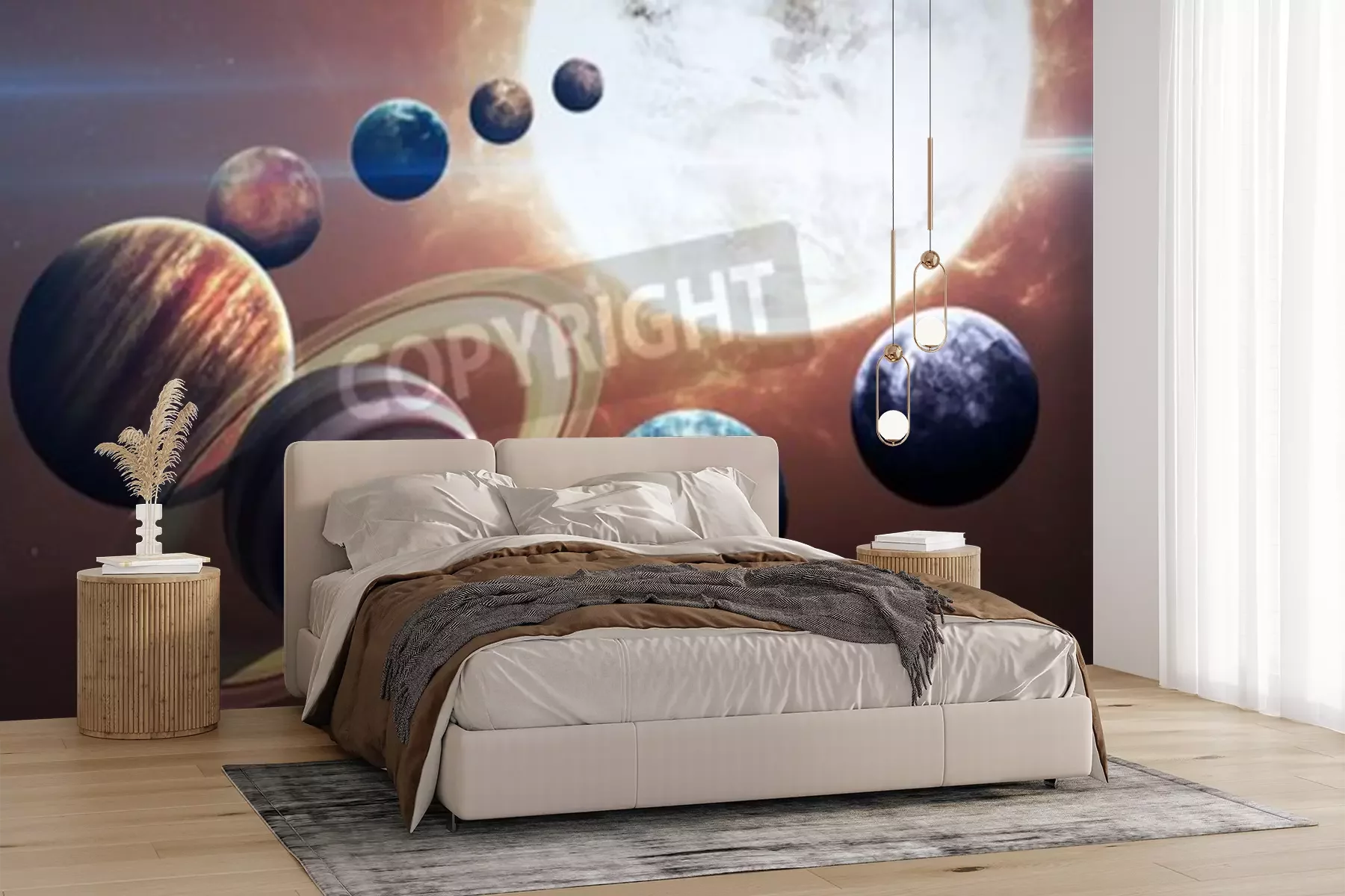 Fotobehang Ruimtelijk patroon van het zonnestelsel