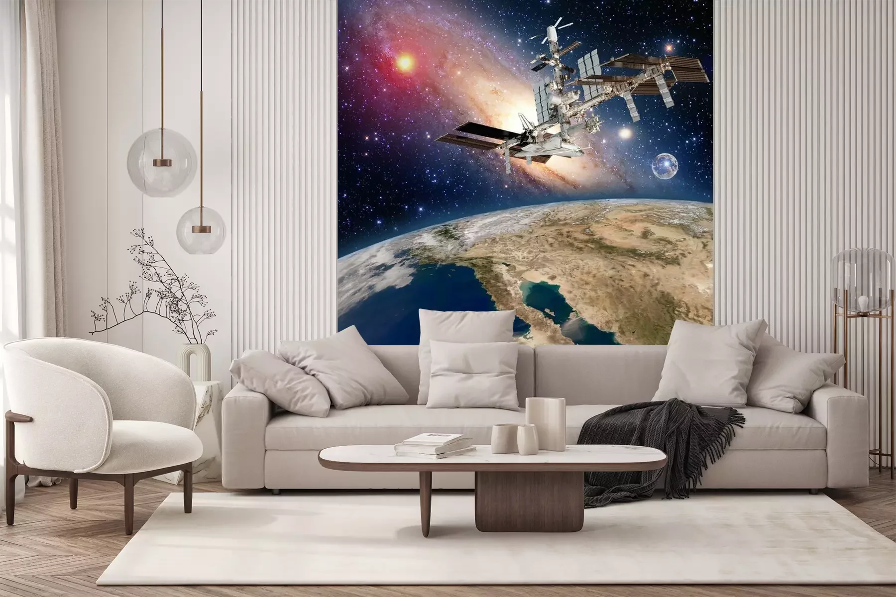 Het materiaal Premium+ is een gestructureerd vinyl op vlies met een gewicht van 255 g/m², dat kleine oneffenheden in de muur effectief camoufleert. De subtiele structuur van fijn zand geeft het oppervlak een exclusieve uitstraling, terwijl de halfmatte afwerking de diepte van de kleuren benadrukt. Het materiaal is dampdoorlatend, waardoor het ook in de keuken en badkamer kan worden gebruikt. De maximale breedte van één baan bedraagt 100 cm – bij grotere afmetingen wordt het fotobehang in meerdere gelijke banen verdeeld. De lijm wordt direct op de muur aangebracht en het behang wordt rand-aan-rand geplakt, wat zorgt voor een esthetisch resultaat zonder zichtbare naden. Het oppervlak kan gemakkelijk worden schoongemaakt door het voorzichtig af te nemen met een vochtige doek.