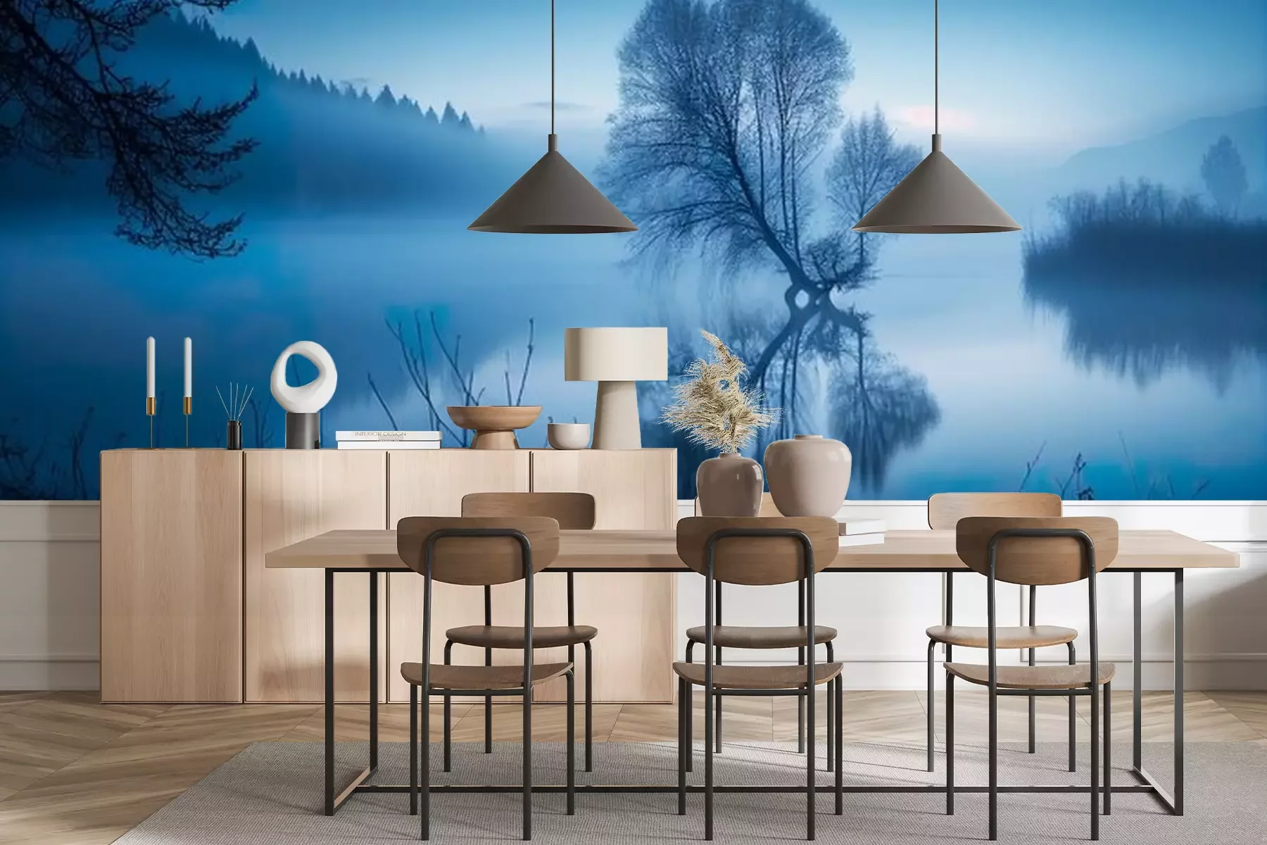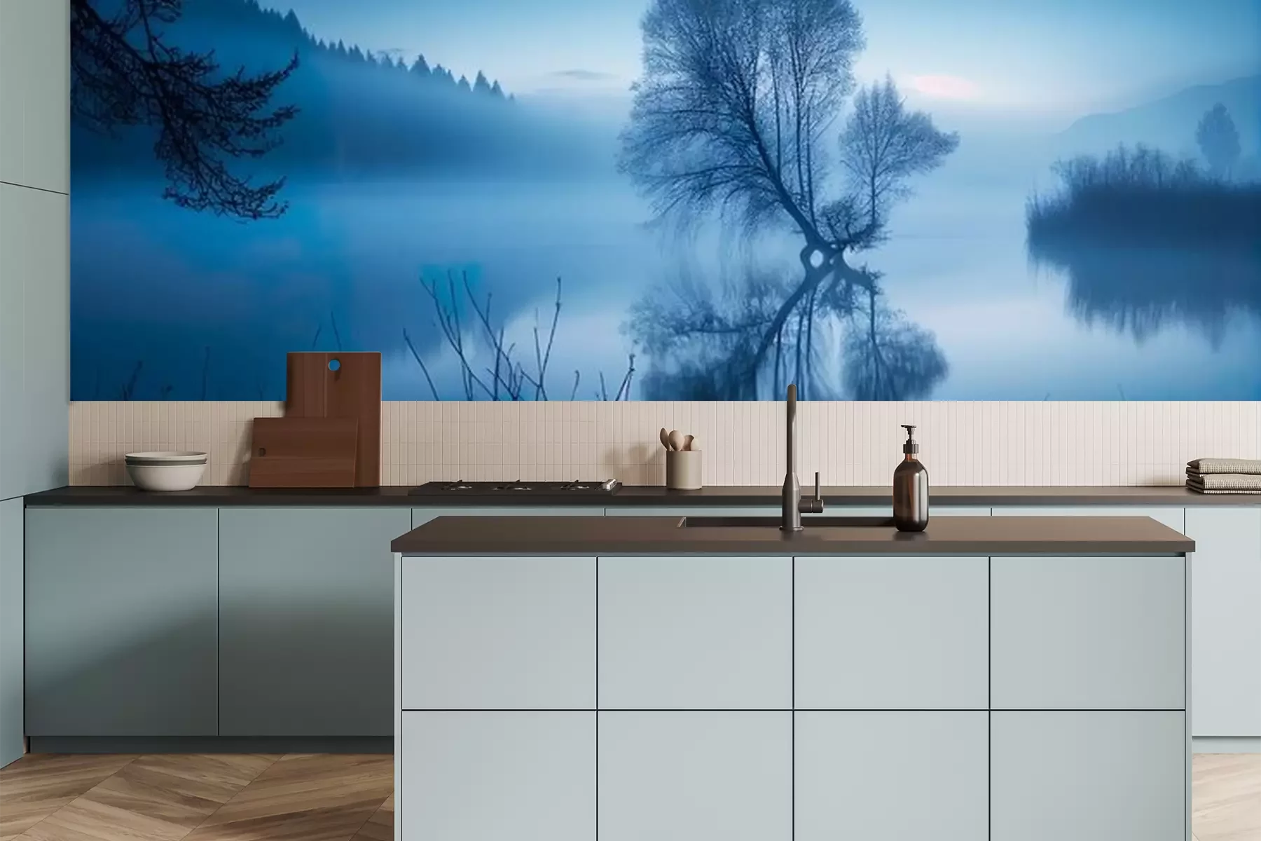 Fotobehang Rustig natuurlijk landschap in blauwe kleur