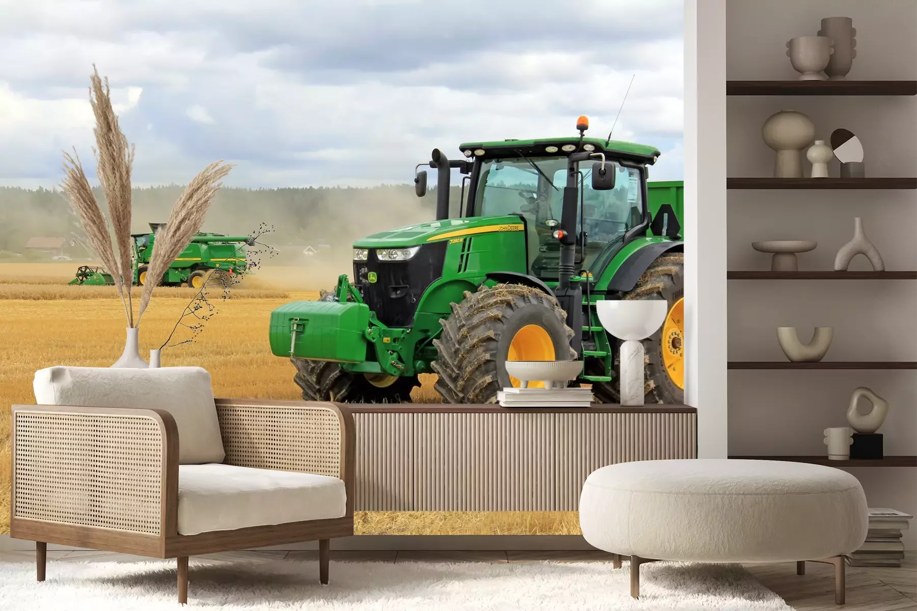 Het materiaal Premium+ is een gestructureerd vinyl op vlies met een gewicht van 255 g/m², dat kleine oneffenheden in de muur effectief camoufleert. De subtiele structuur van fijn zand geeft het oppervlak een exclusieve uitstraling, terwijl de halfmatte afwerking de diepte van de kleuren benadrukt. Het materiaal is dampdoorlatend, waardoor het ook in de keuken en badkamer kan worden gebruikt. De maximale breedte van één baan bedraagt 100 cm – bij grotere afmetingen wordt het fotobehang in meerdere gelijke banen verdeeld. De lijm wordt direct op de muur aangebracht en het behang wordt rand-aan-rand geplakt, wat zorgt voor een esthetisch resultaat zonder zichtbare naden. Het oppervlak kan gemakkelijk worden schoongemaakt door het voorzichtig af te nemen met een vochtige doek.